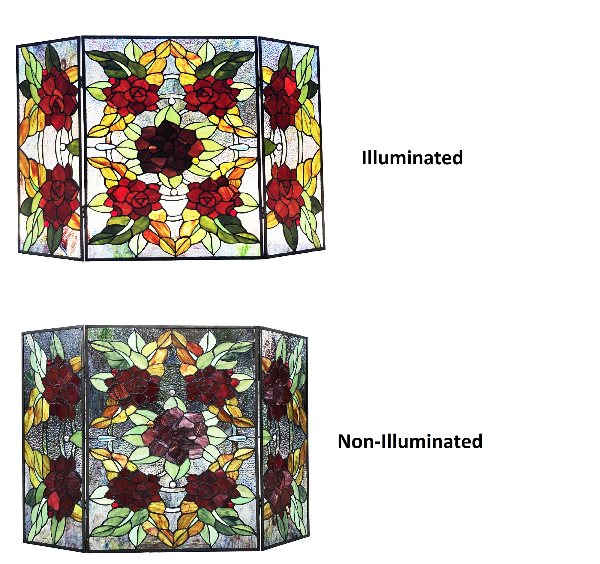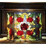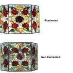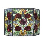 CHLOE Lighting CANNA Tiffany-Style 3pcs Folding Floral Stained Glass Fireplace Screen 40″ Width