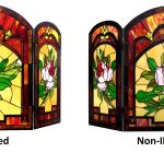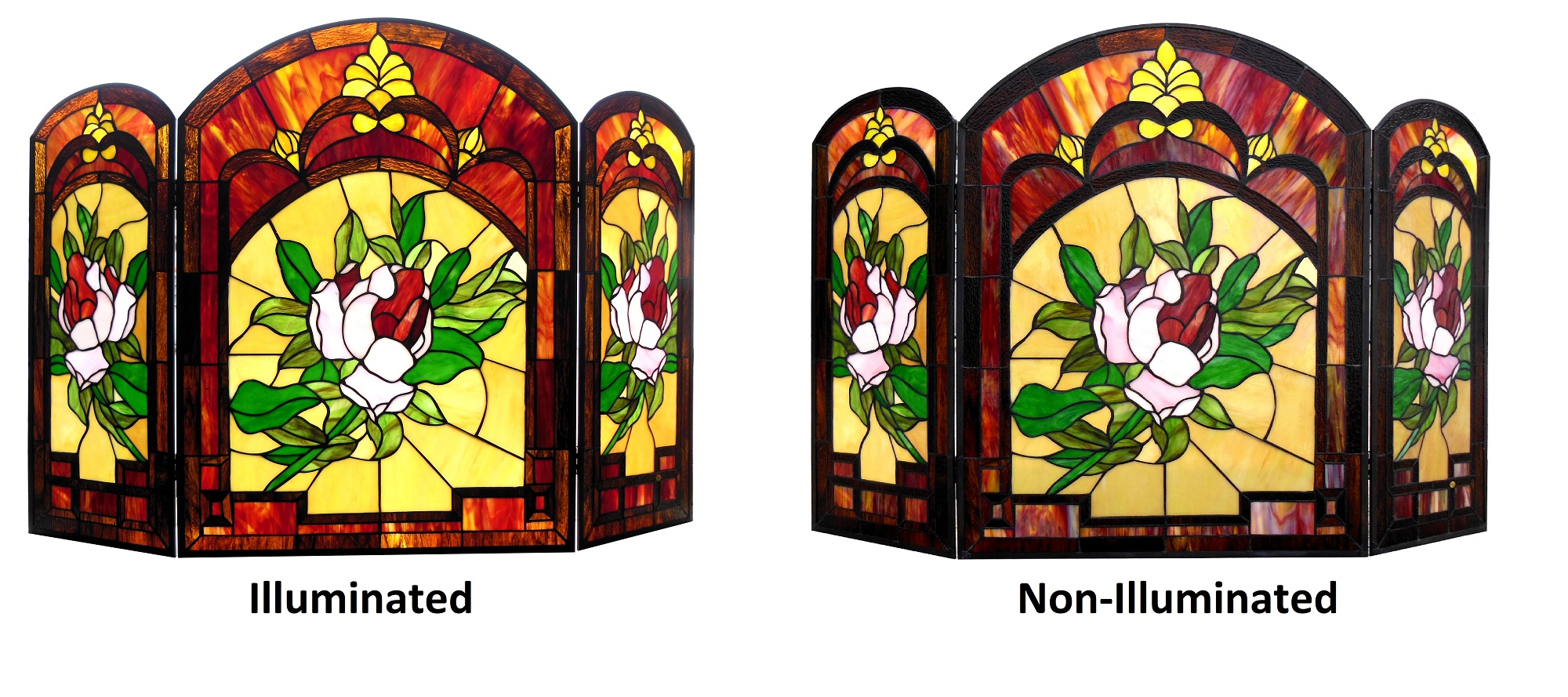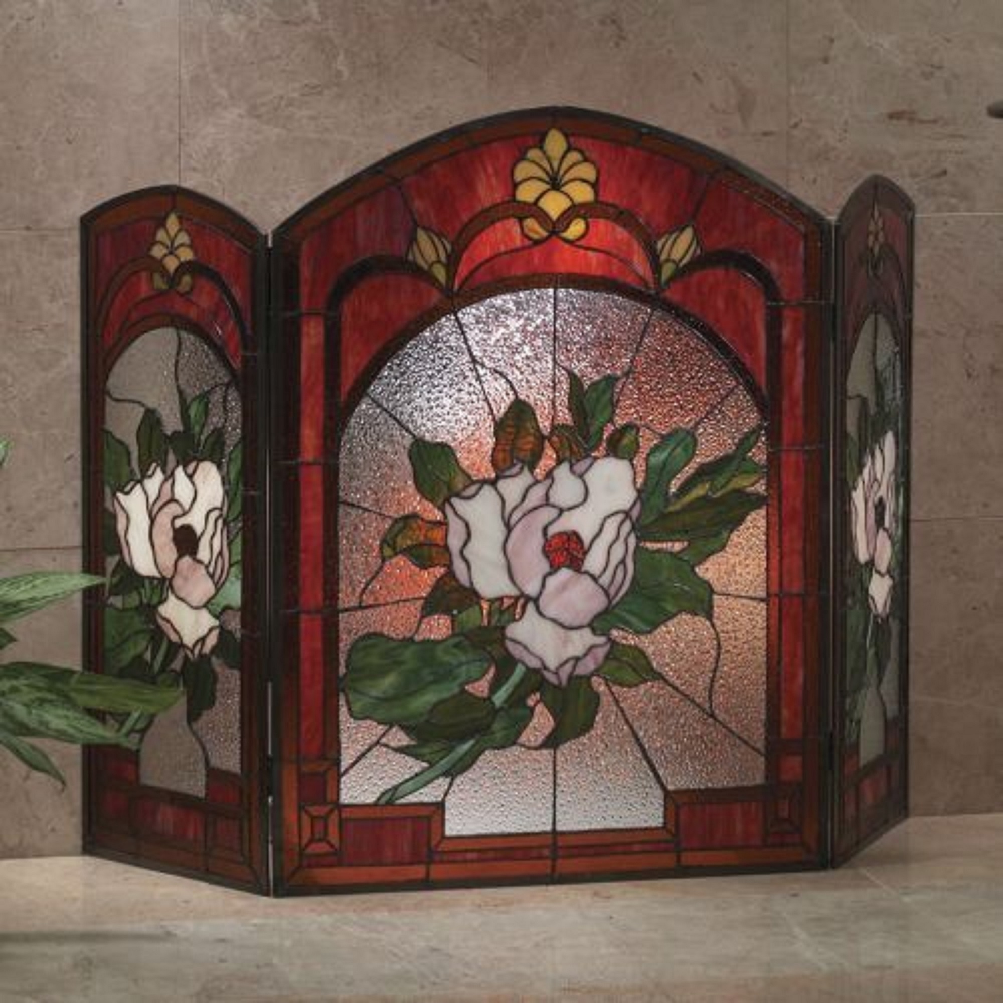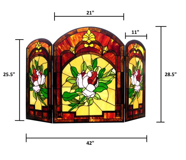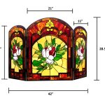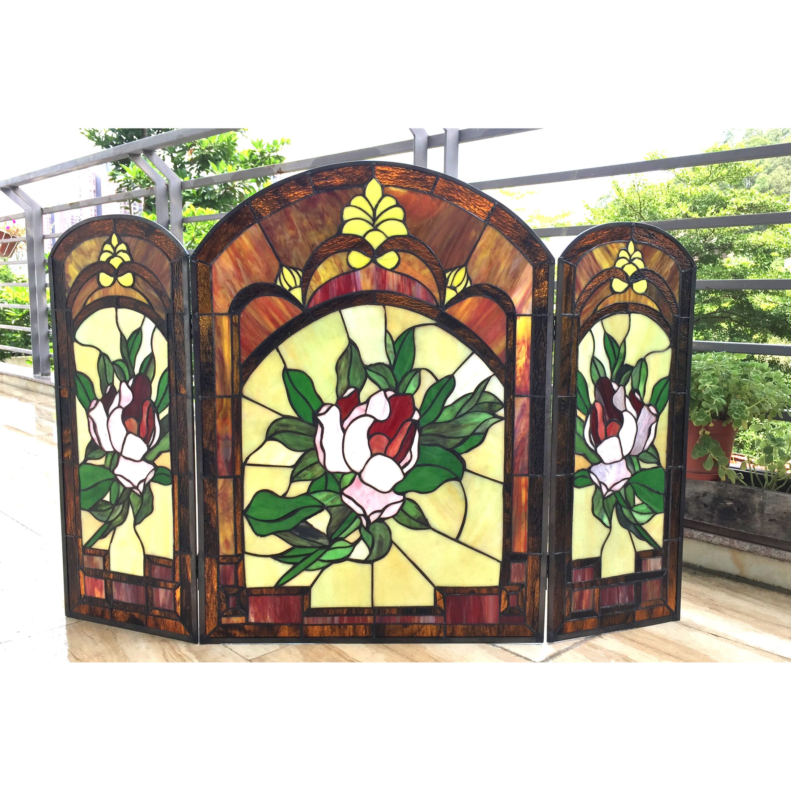 CHLOE Lighting “IGGY” Tiffany-glass Floral Design 3pcs Folding Fireplace Screen 42″ Wide