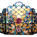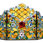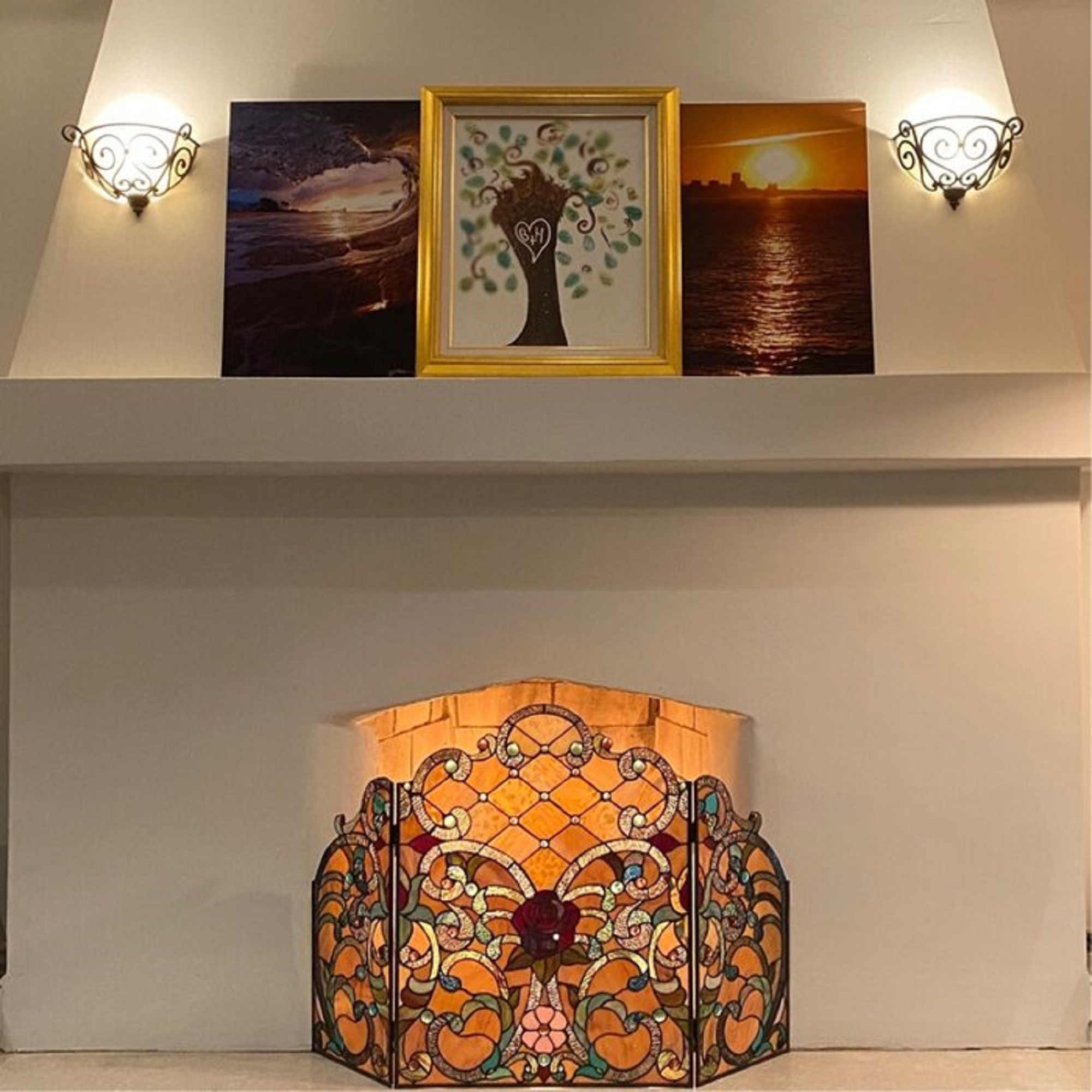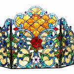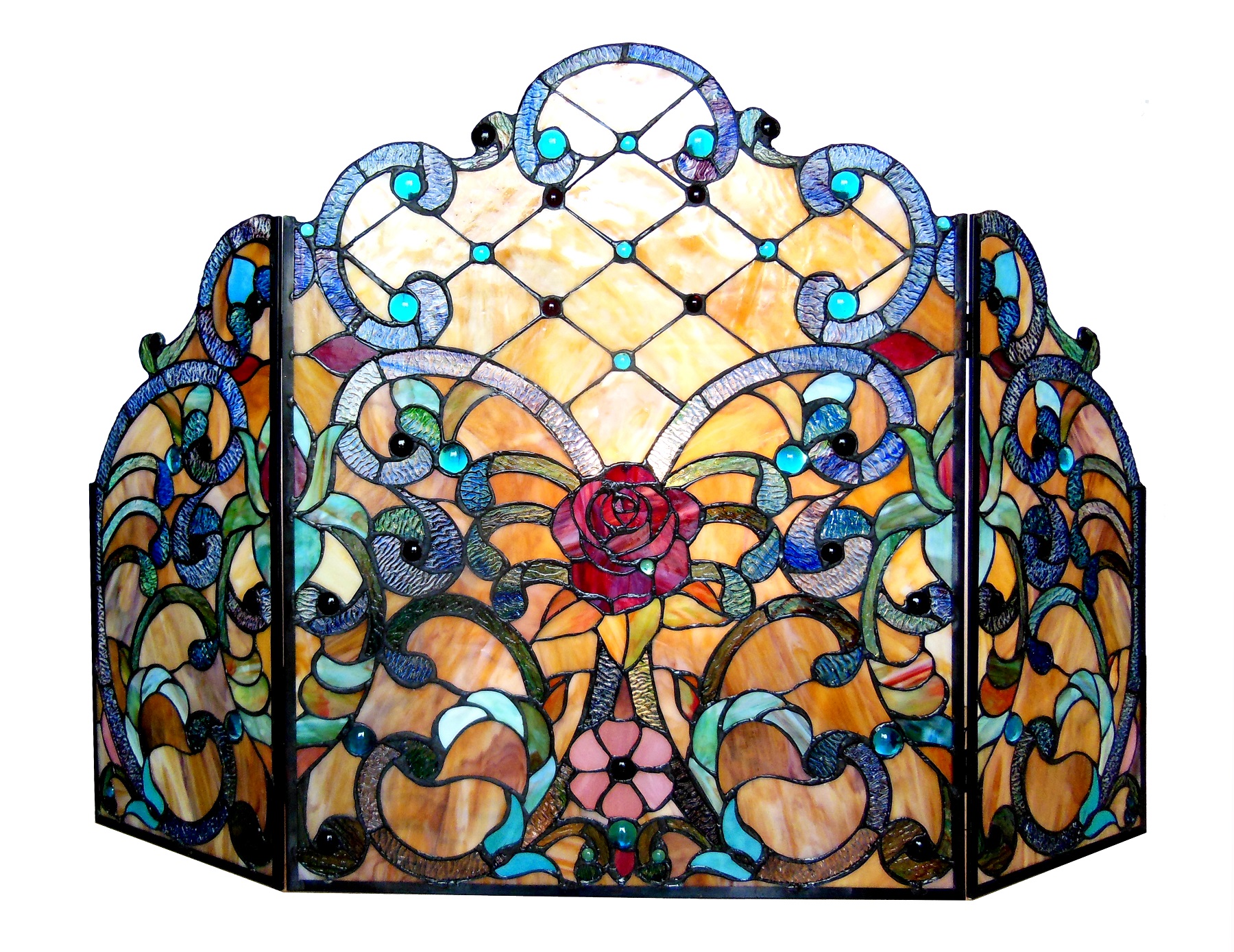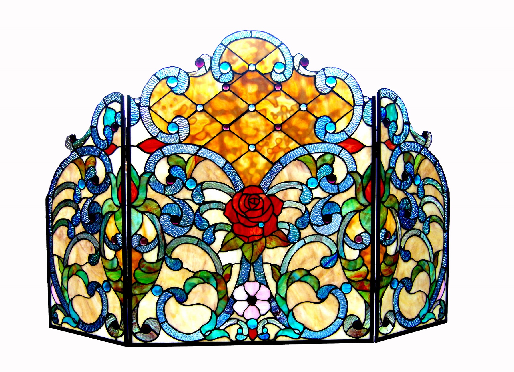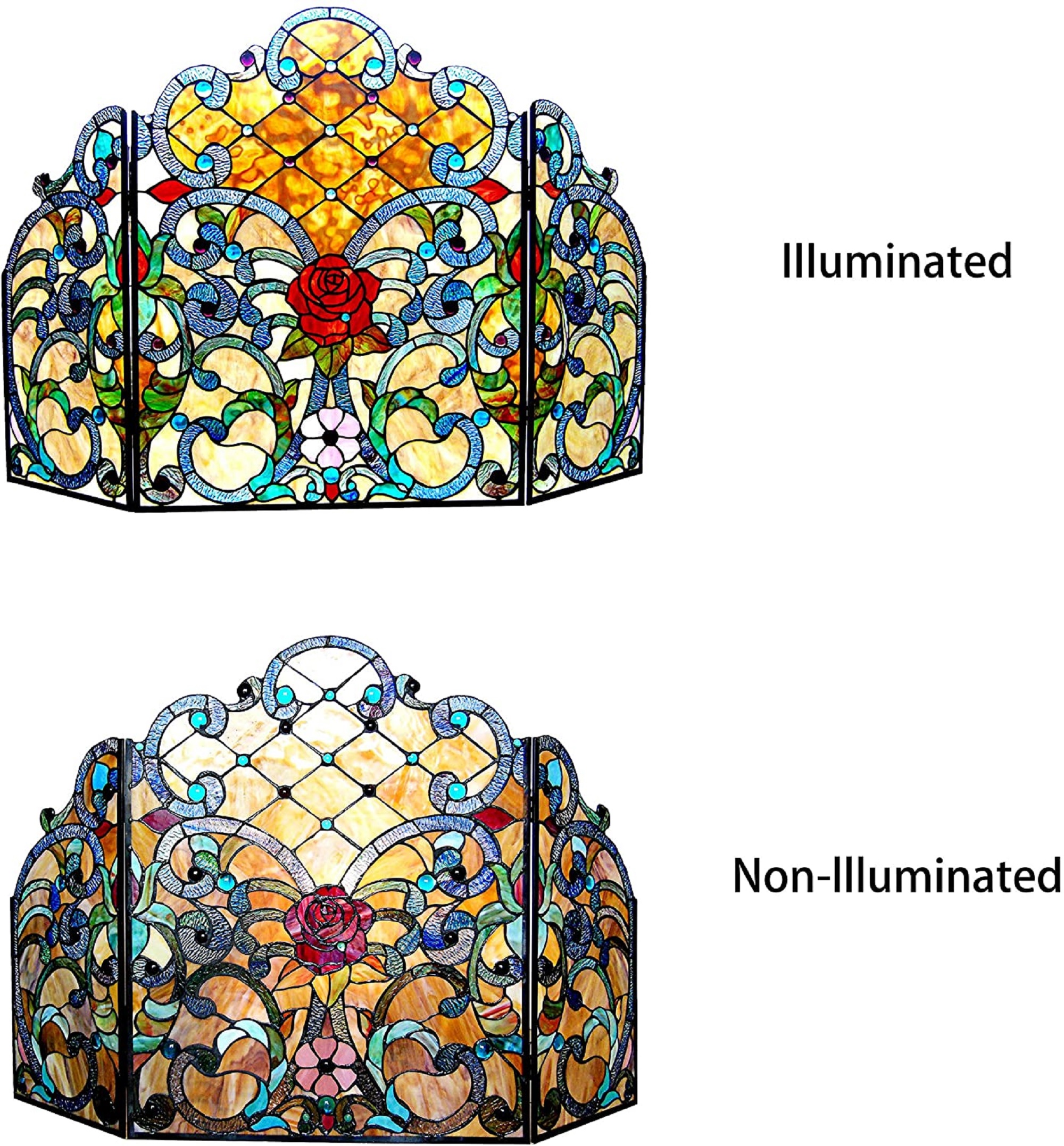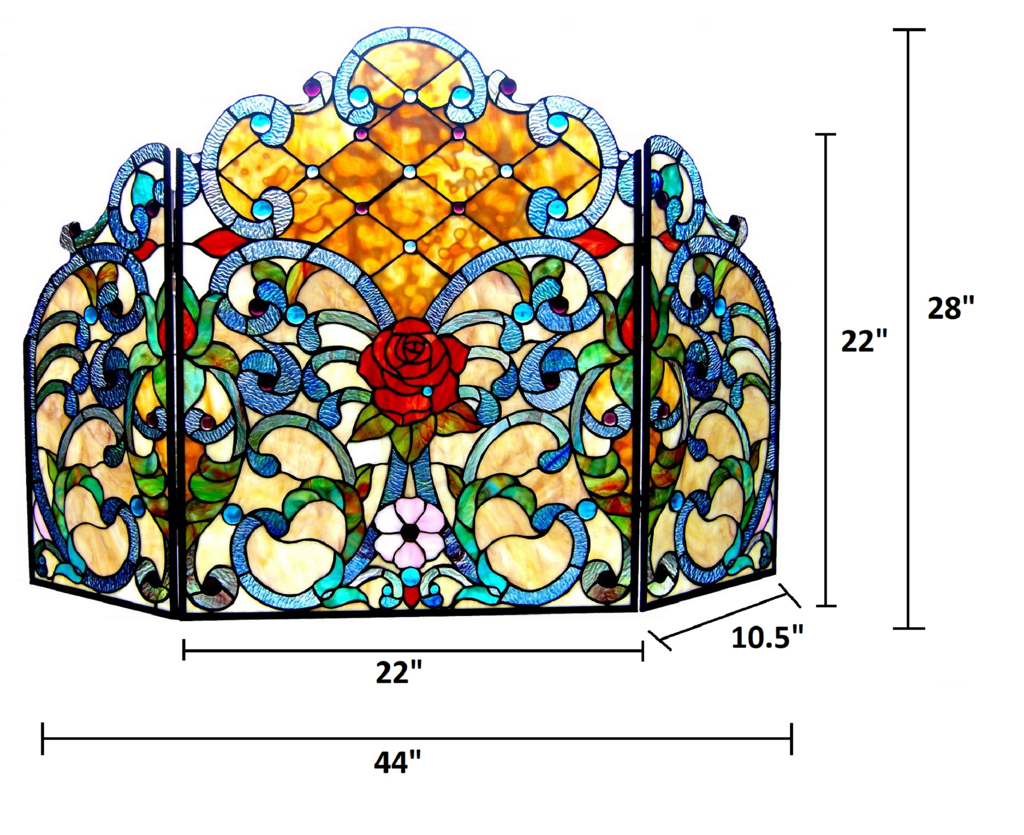 CHLOE Lighting “ROZE” Tiffany-glass Rose 3pcs Folding Fireplace Screen 44×28