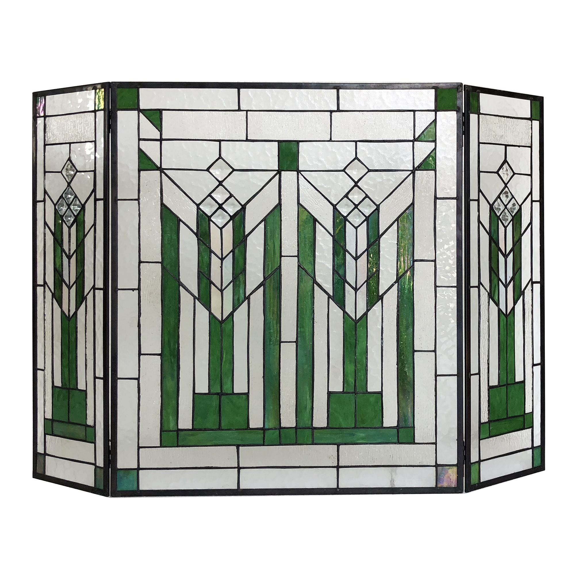 CHLOE Lighting BENJAMIN Mission 3pcs Folding Tiffany-glass Fireplace Screen 38″ Wide