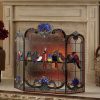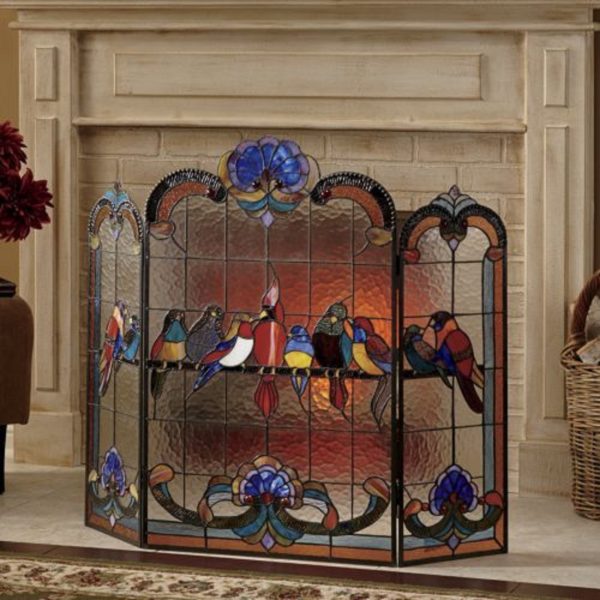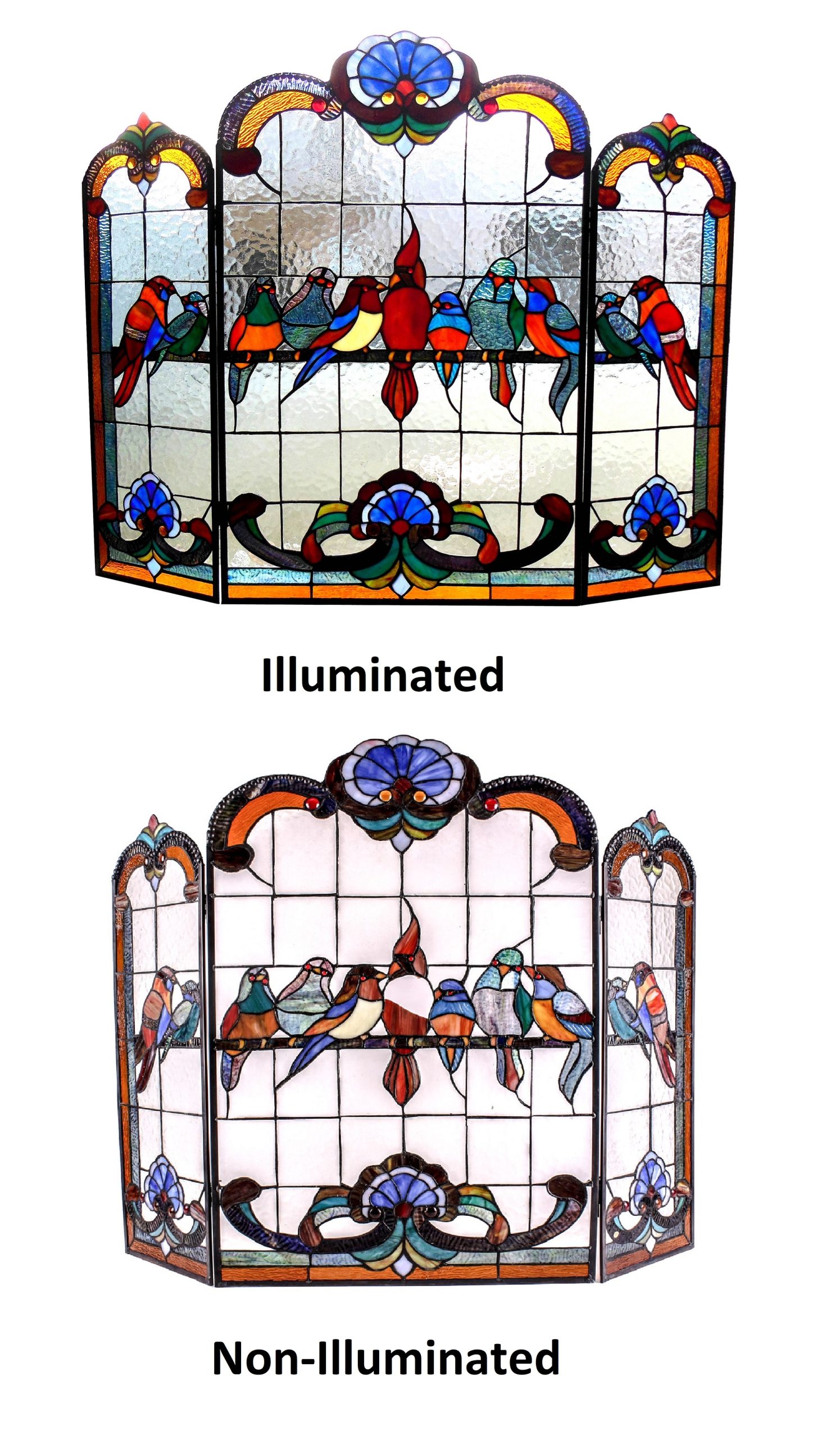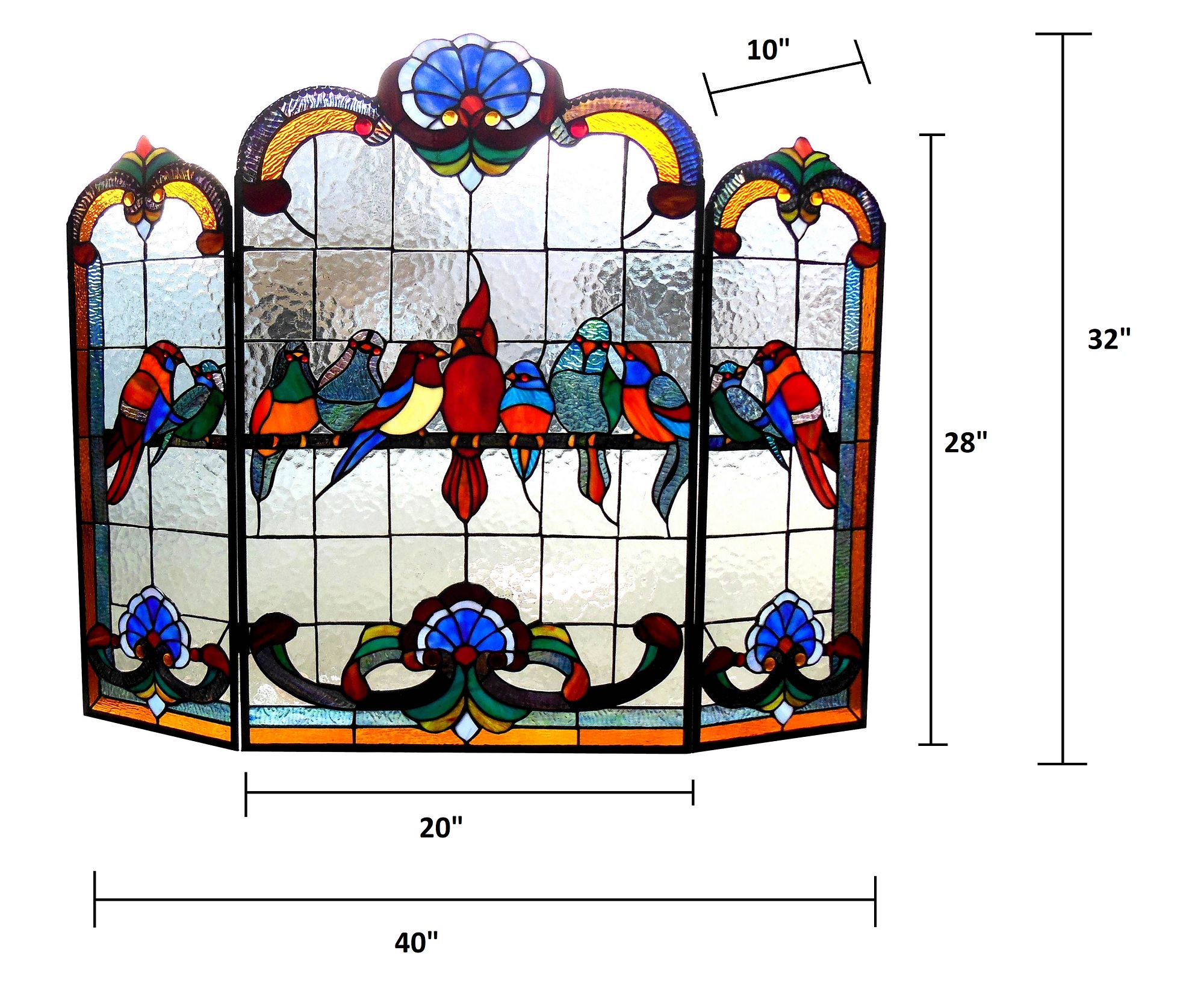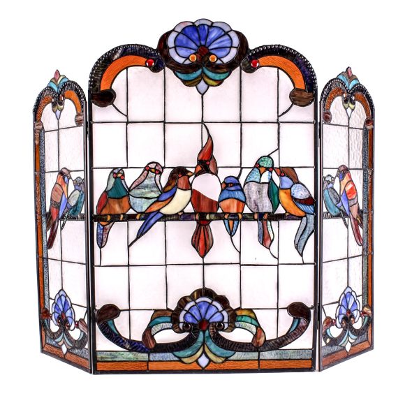 CHLOE Lighting “Aves” Tiffany-glass Gathering Birds Design 3pcs Folding Fireplace Screen 40″ Wide