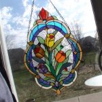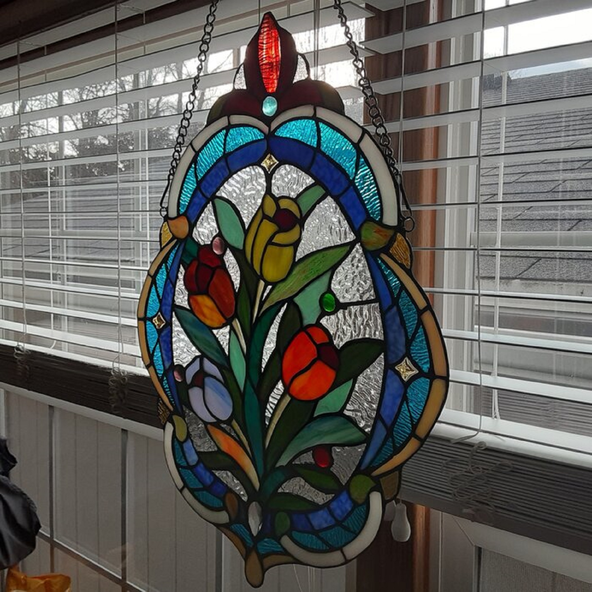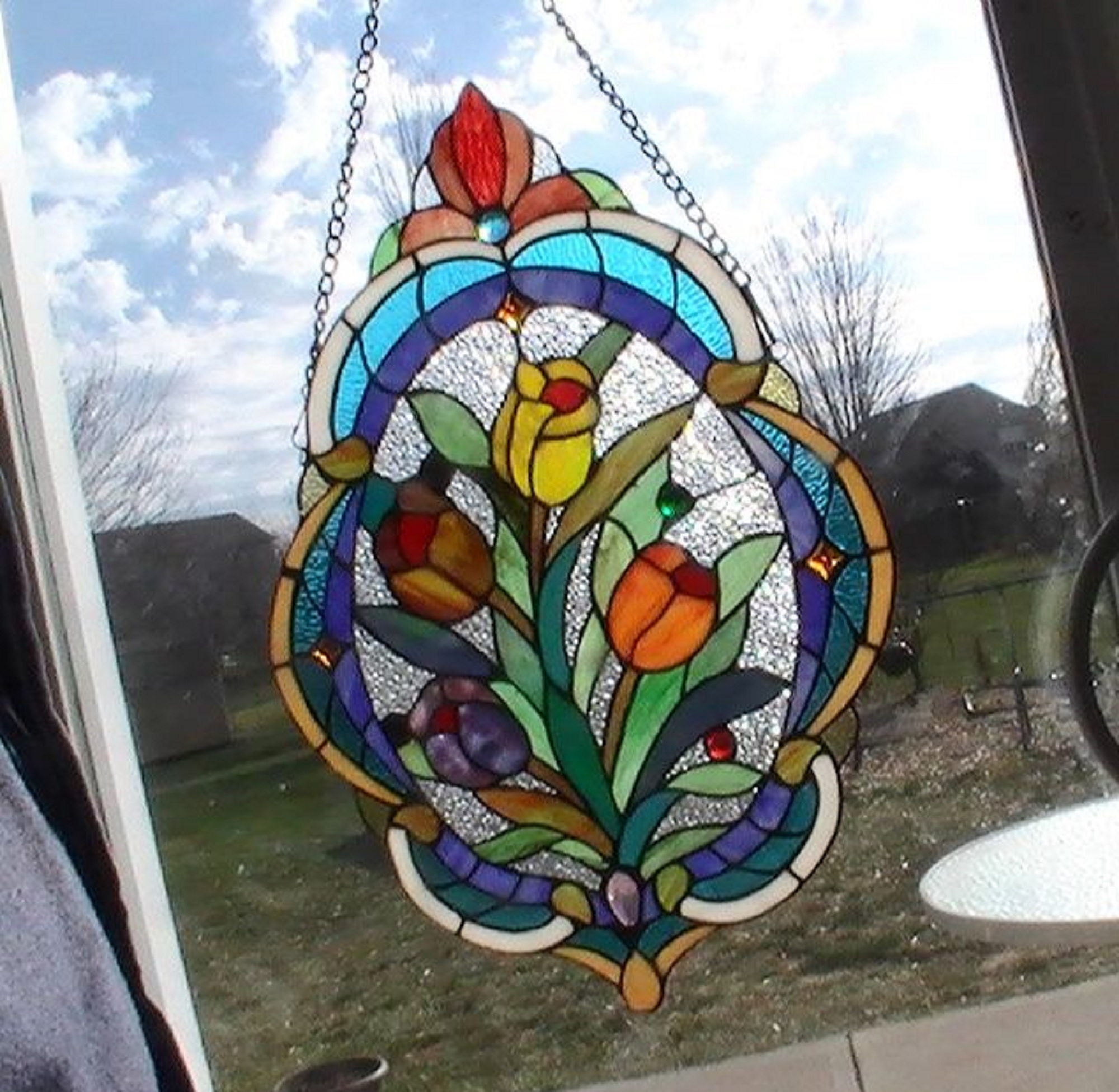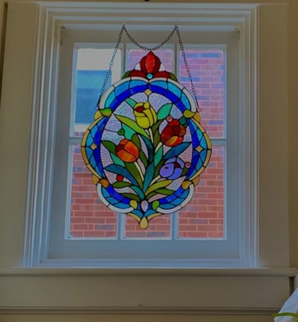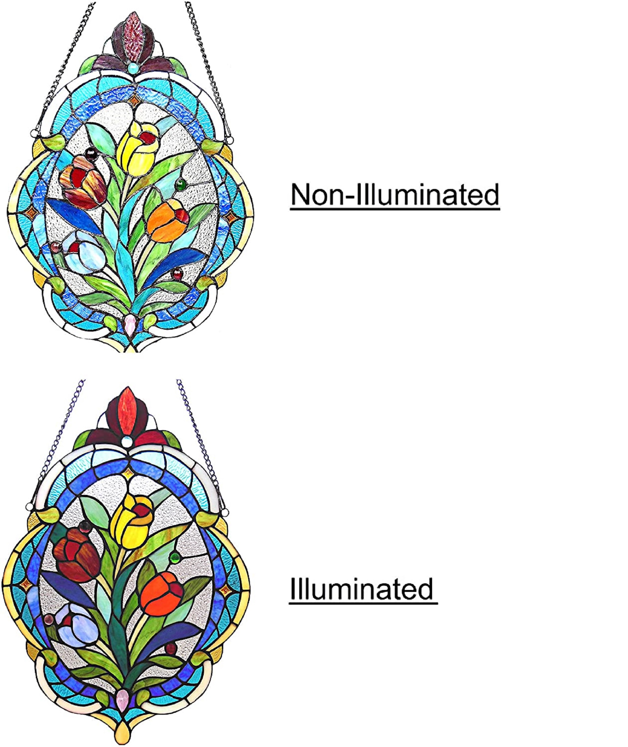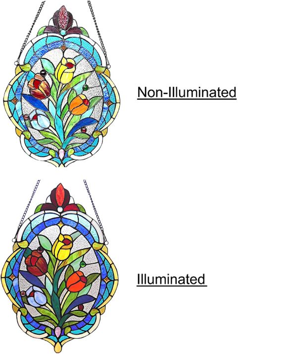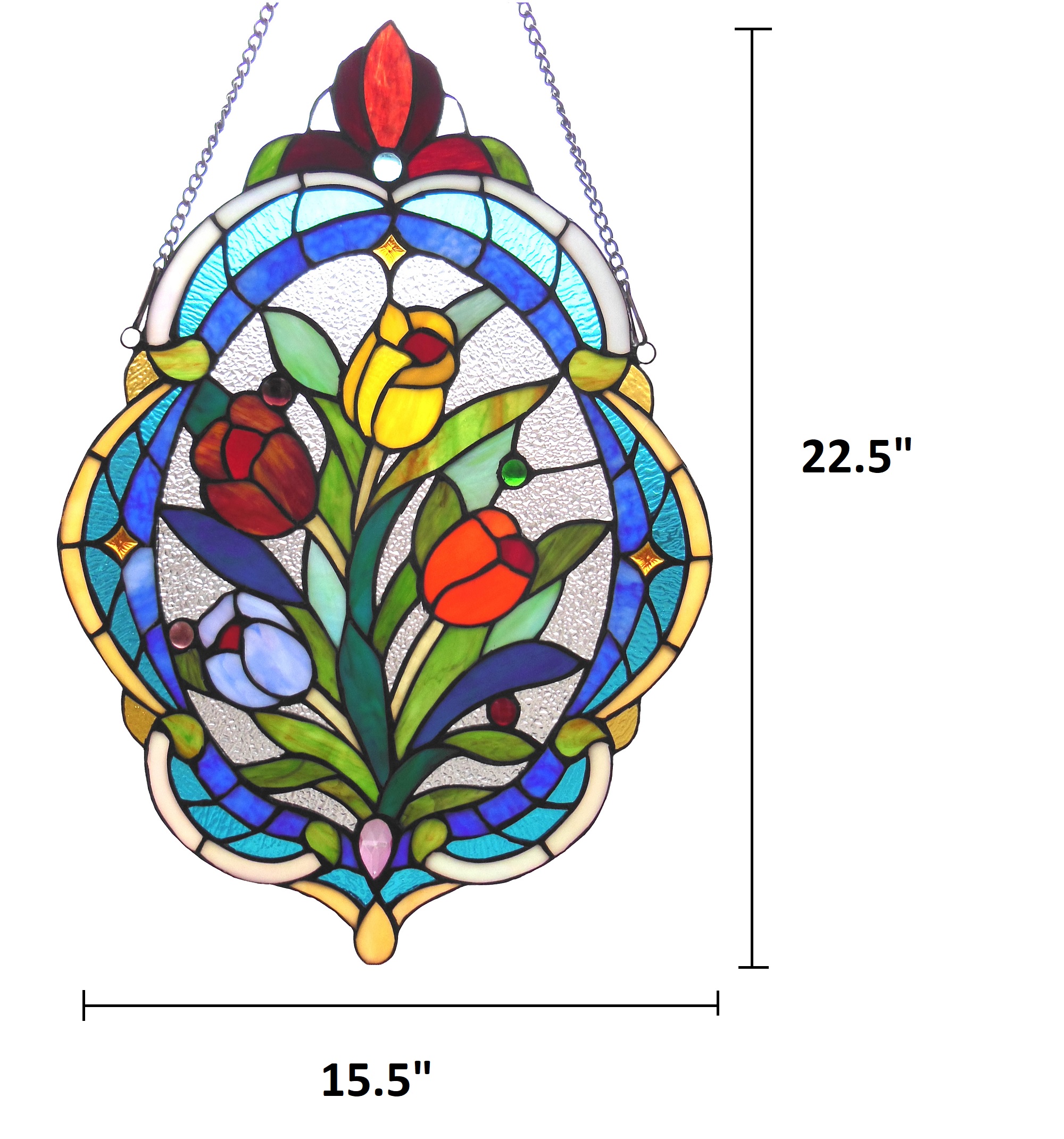 CHLOE Lighting “KELDA” Tiffany-style Tulip Glass Window Panel 15.5×22.5