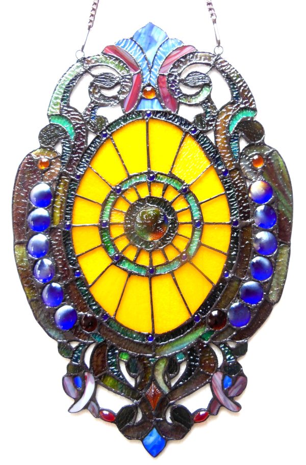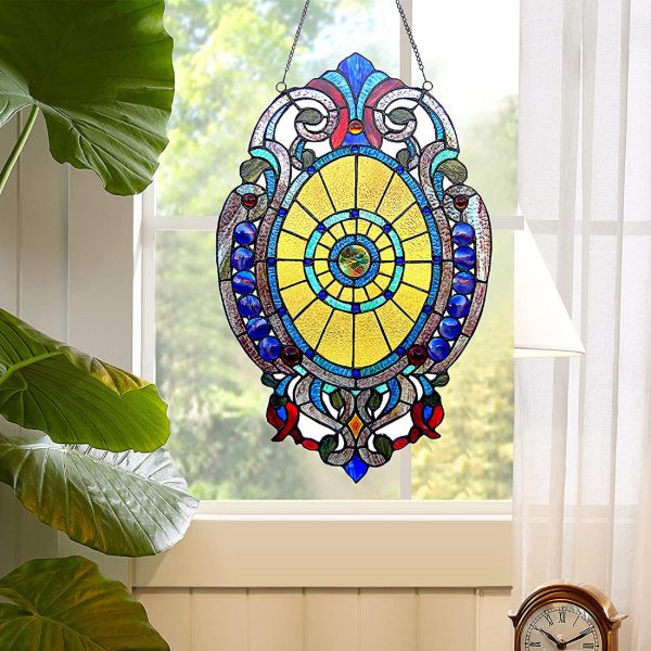 CHLOE Lighting “WEBSTER” Tiffany-style Victorian Glass Window Panel 15×23