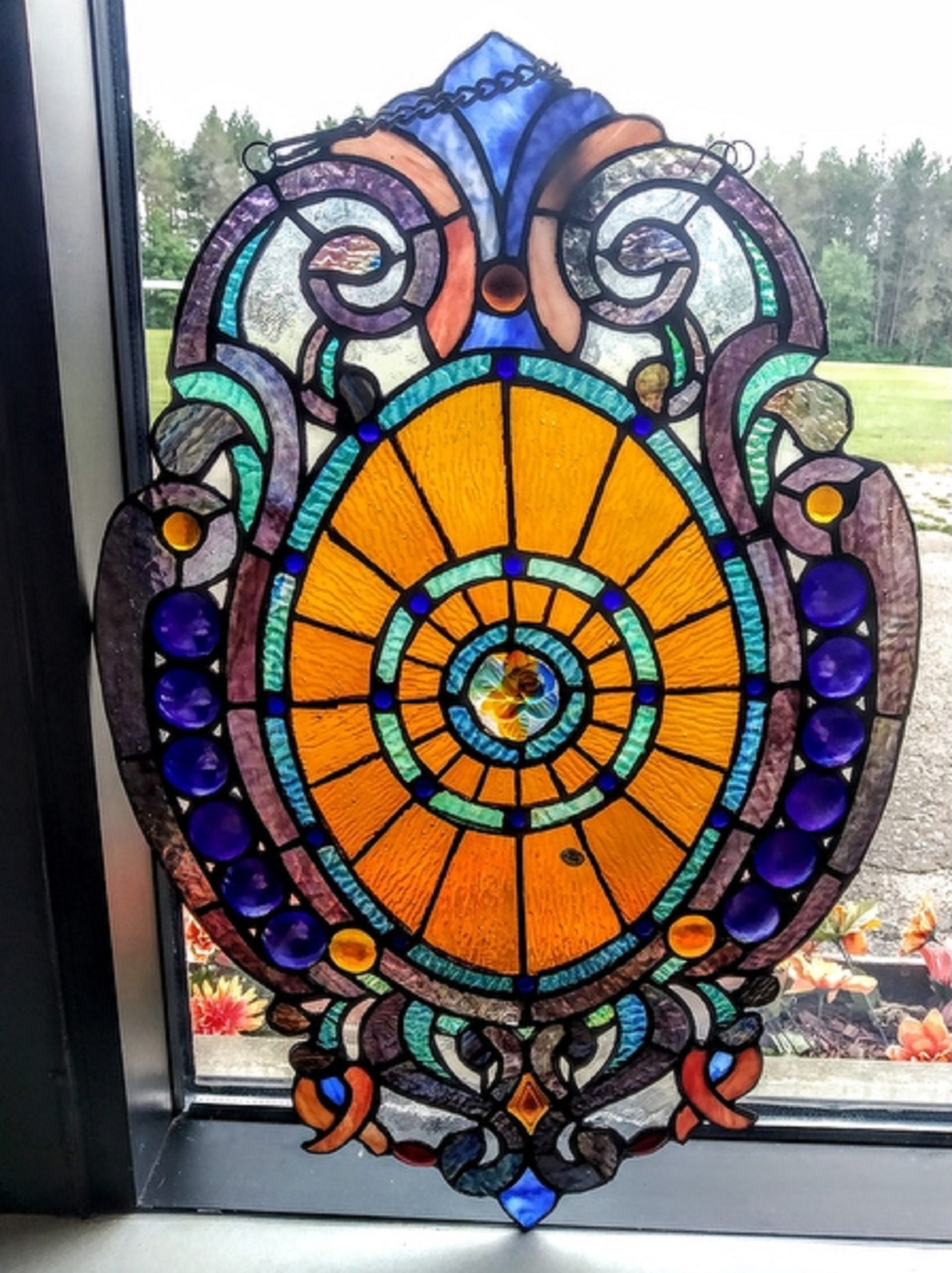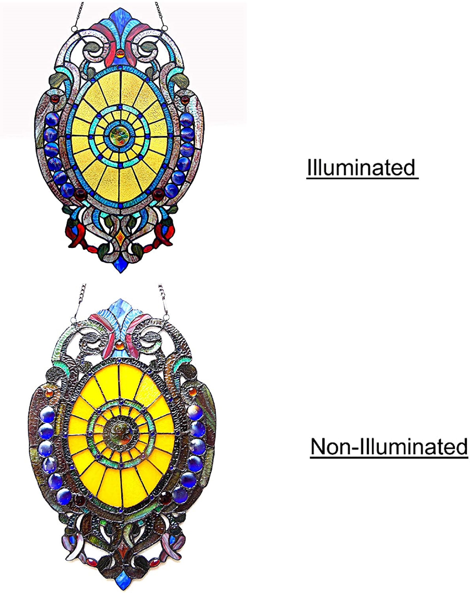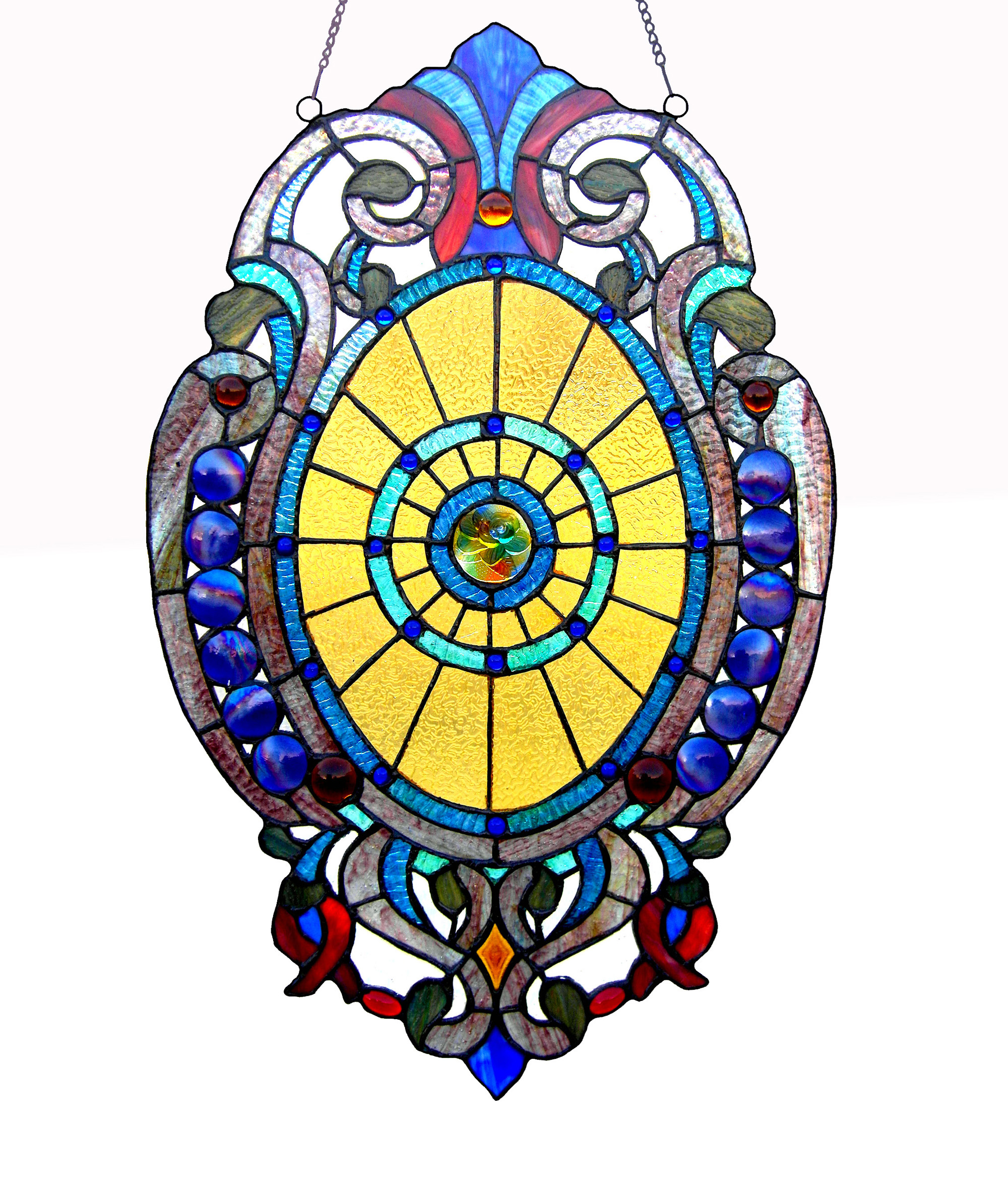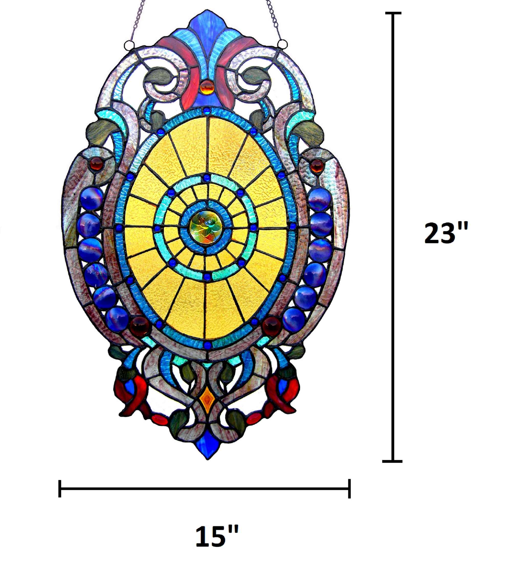 CHLOE Lighting “WEBSTER” Tiffany-style Victorian Glass Window Panel 15×23