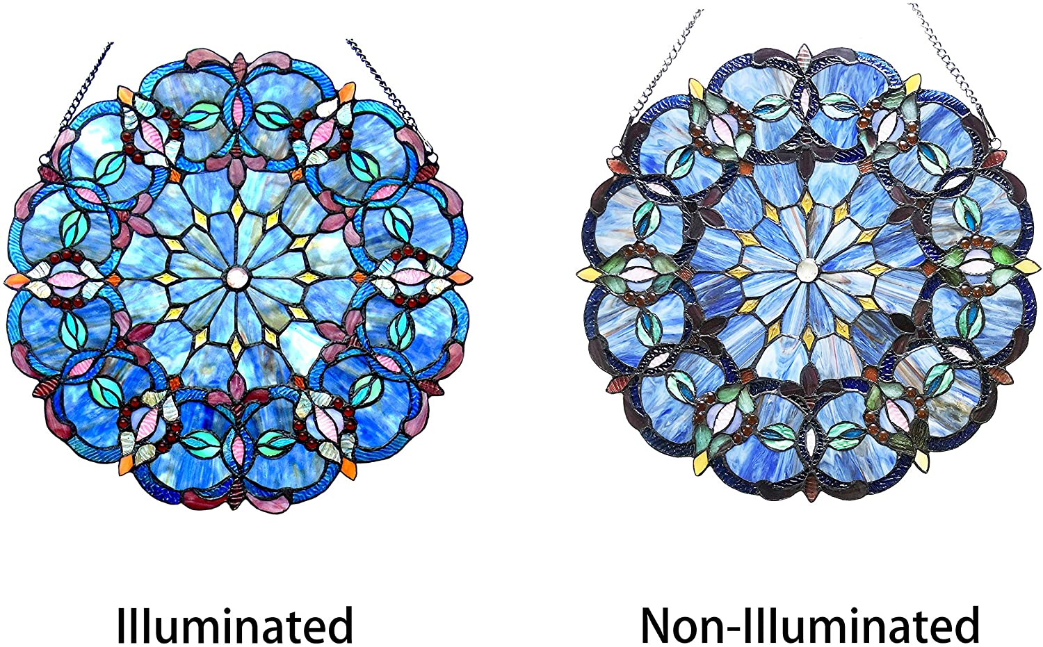 CHLOE Lighting ALISA Tiffany-Style Victorian Stained-Glass Window Panel 20″ Height
