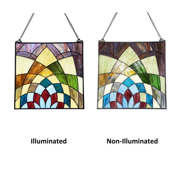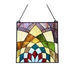 CHLOE Lighting KALEIDOSCOPE Geometric-Style Black Finish Stained Glass Window Panel 16″ Tall