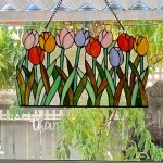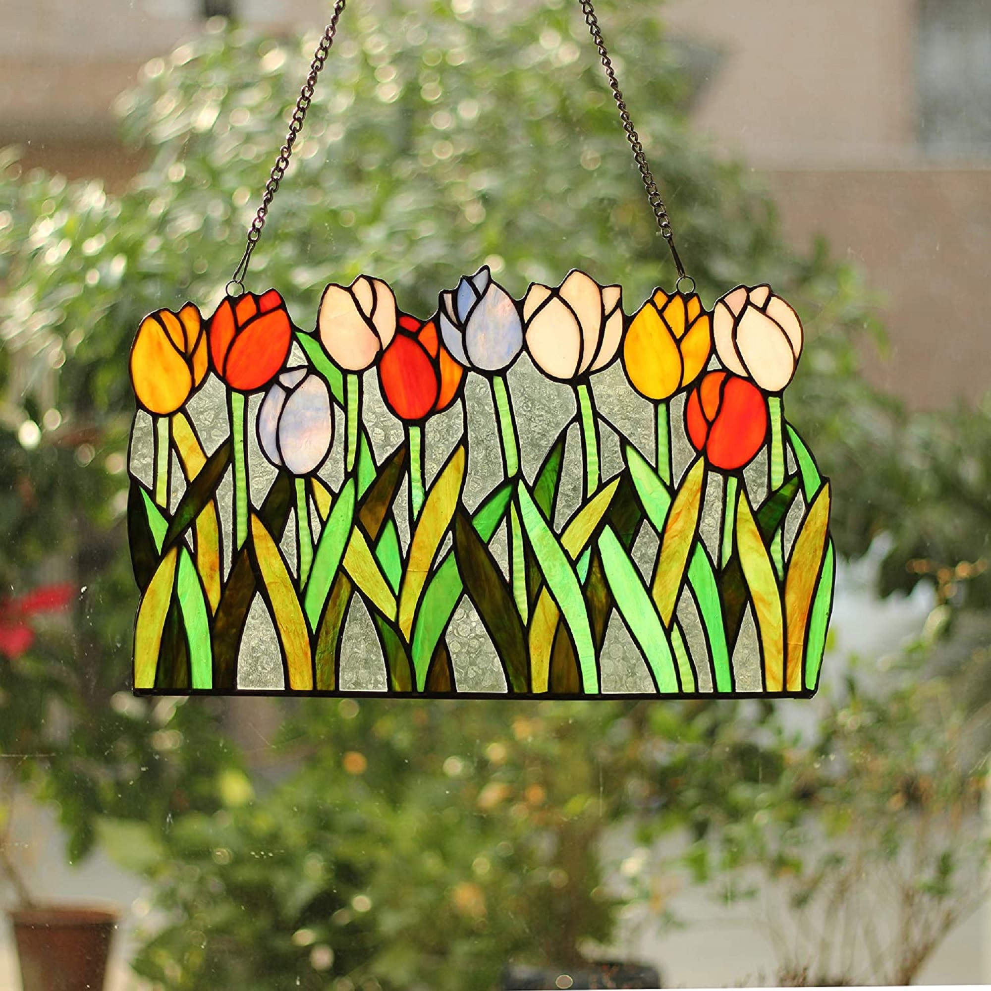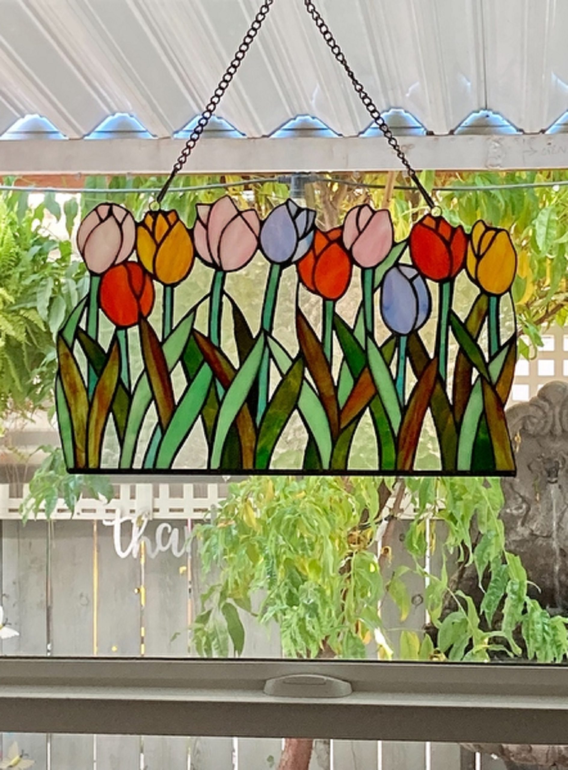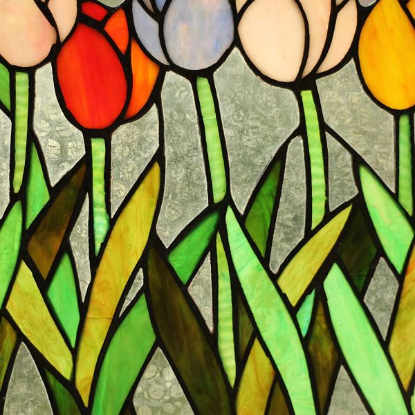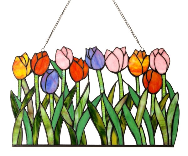 CHLOE Lighting “TULIPA” Tiffany-glass Tulips Window Panel 18″ Wide