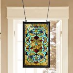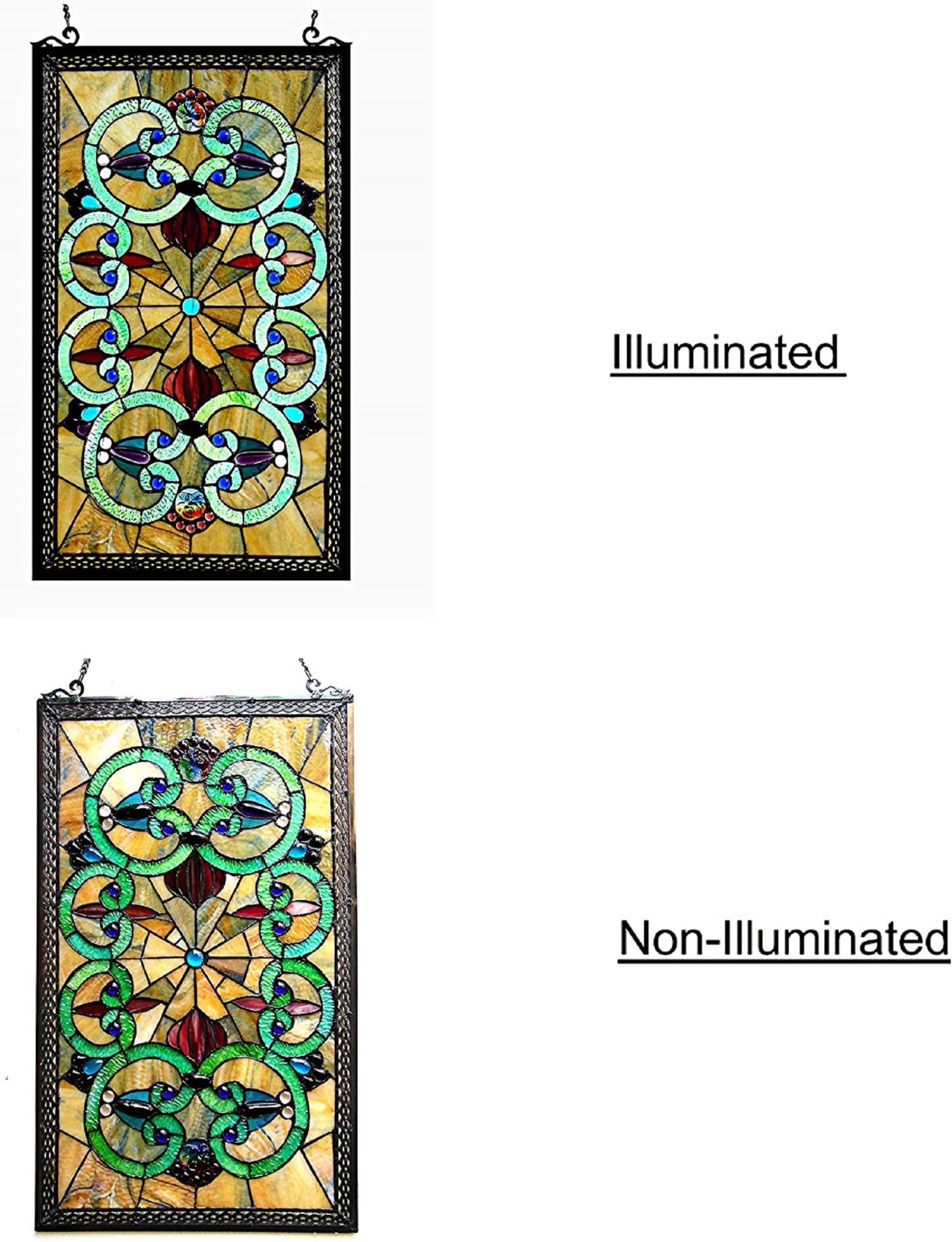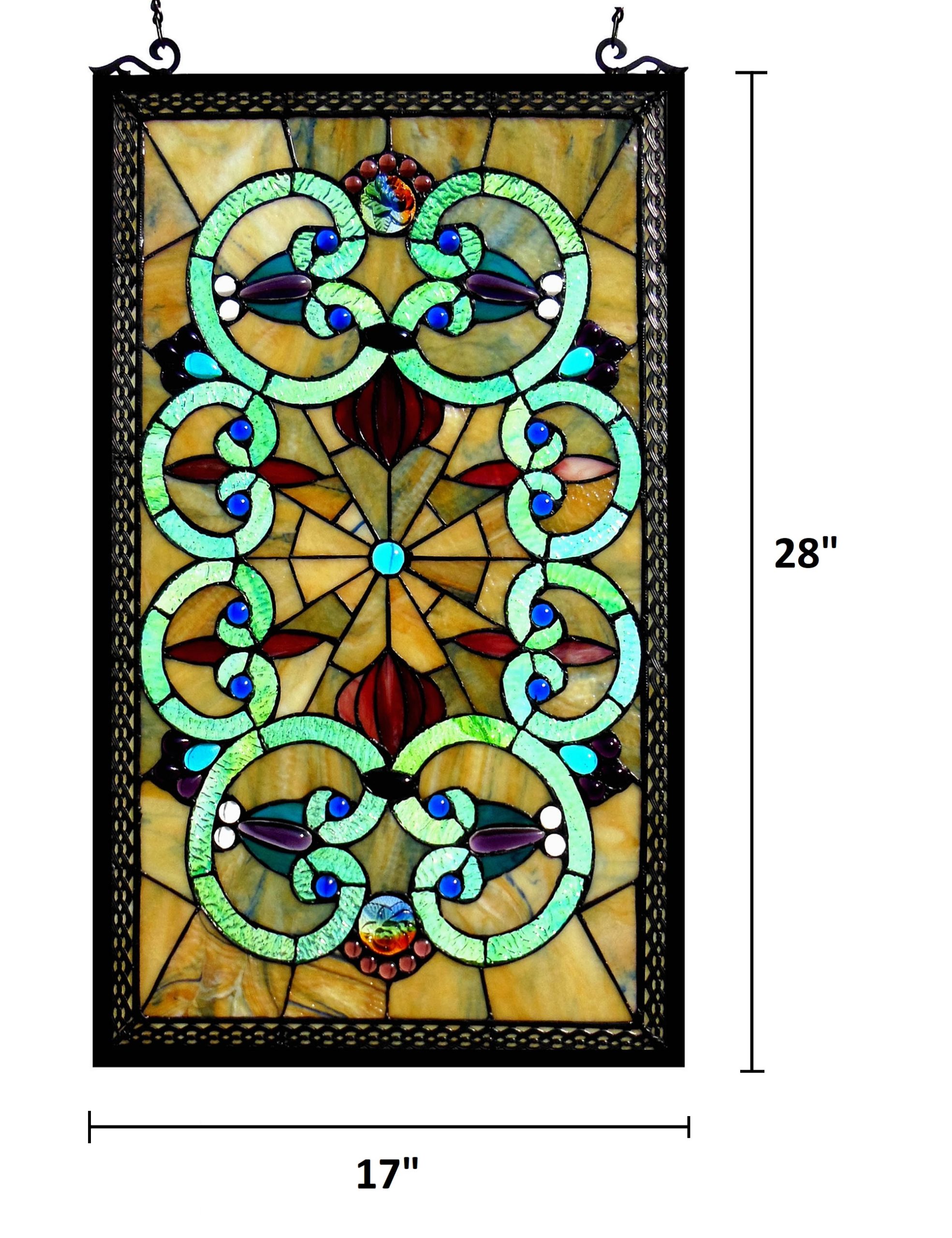 CHLOE Lighting “HEATHER” Tiffany-glass Victorian Window Panel 17×28