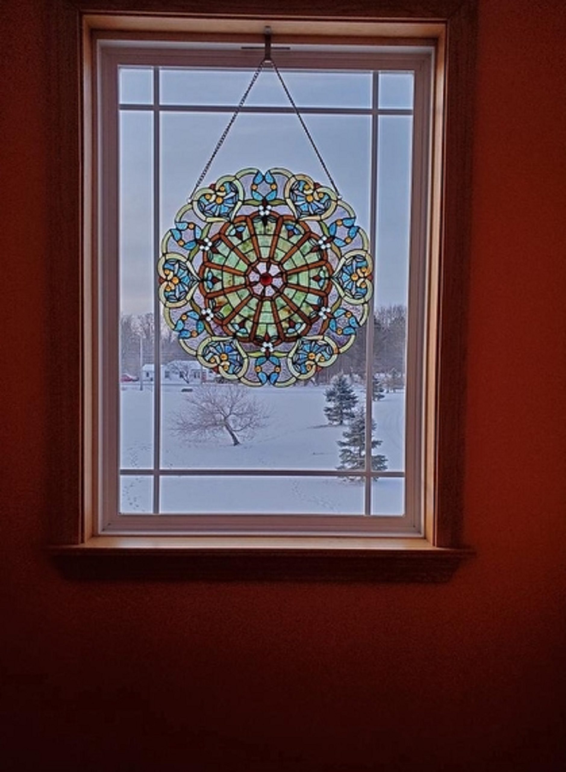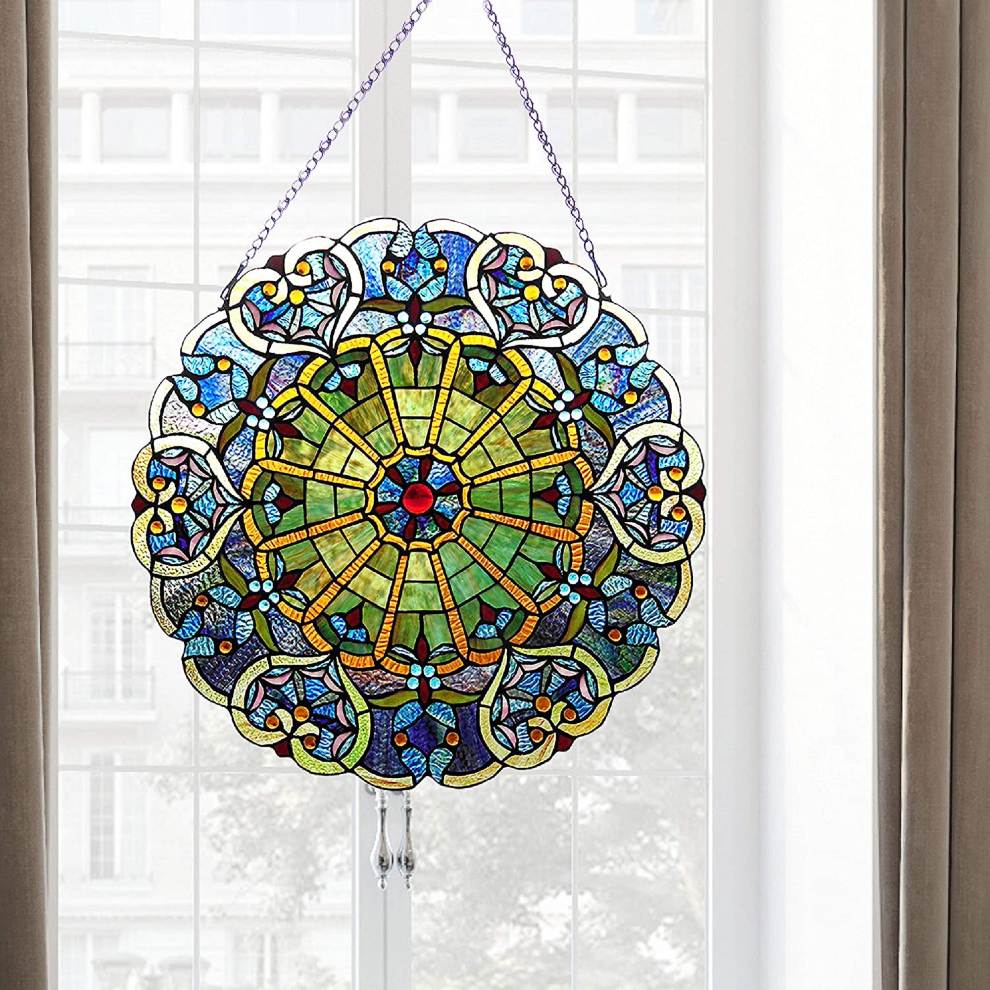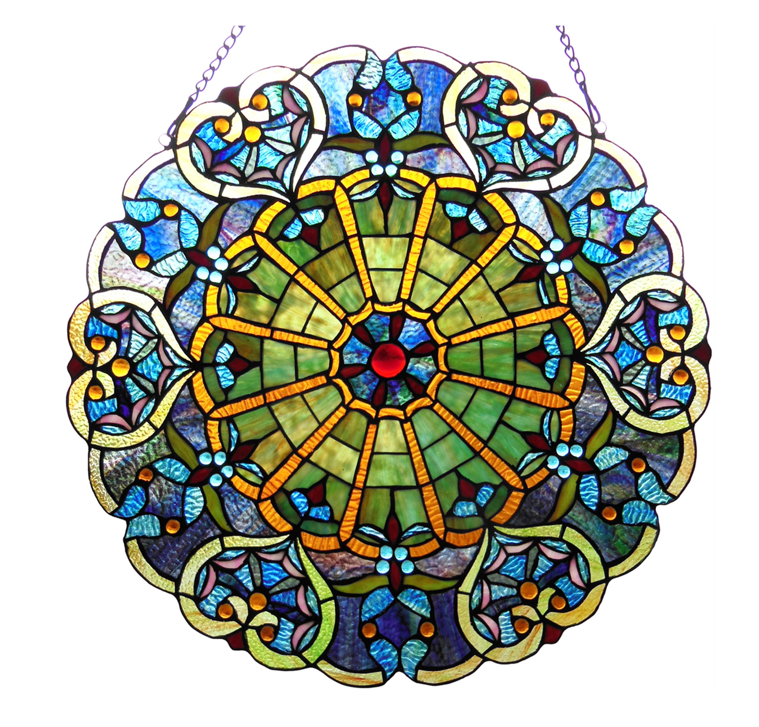 CHLOE Lighting “LOVETTE” Tiffany-style Victorian Glass Window Panel 23″