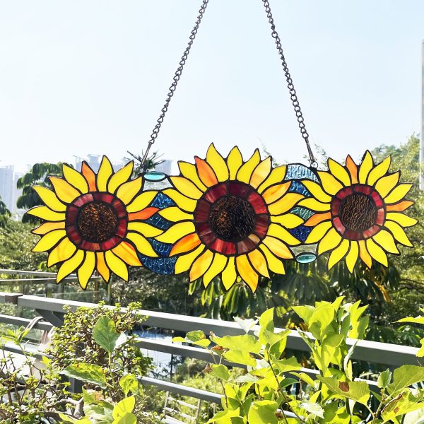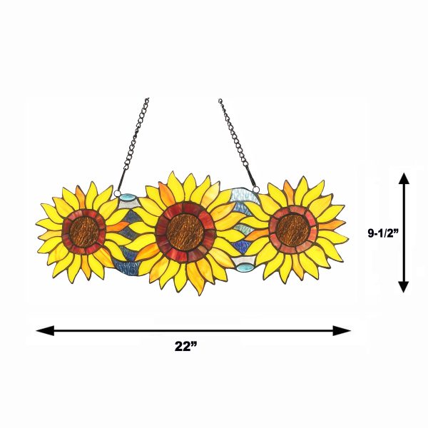 CHLOE Lighting ANNUUS Floral-Style Stained Glass Window Panel 22″ Wide
