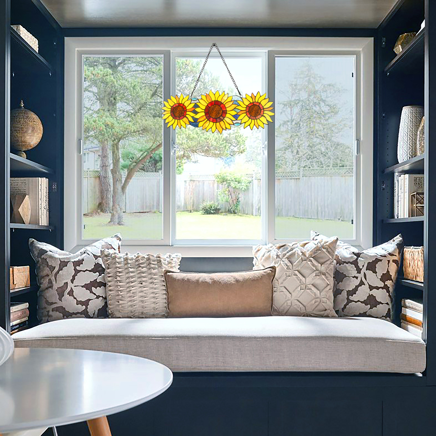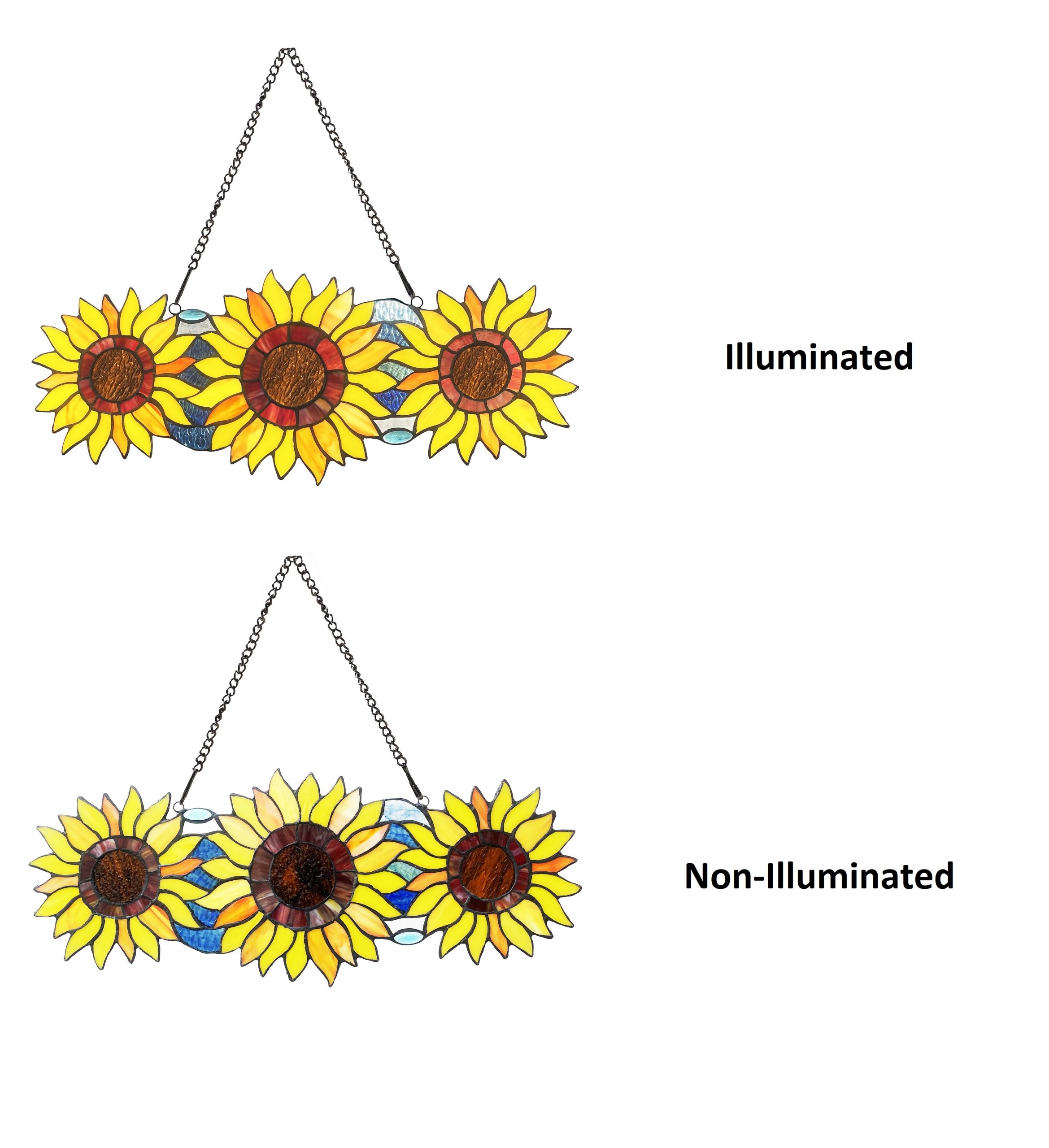 CHLOE Lighting ANNUUS Floral-Style Stained Glass Window Panel 22″ Wide