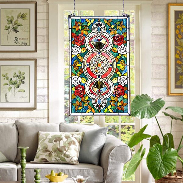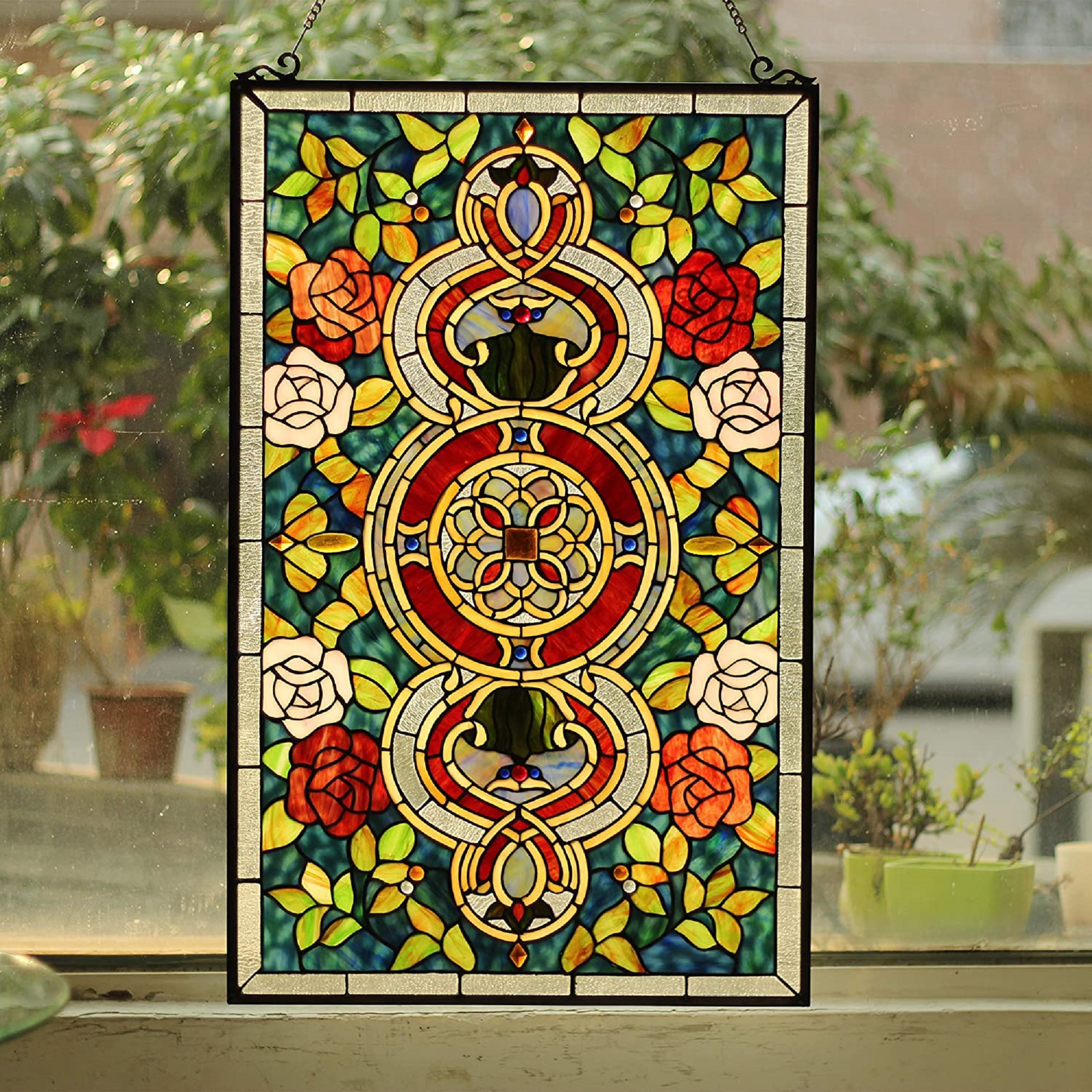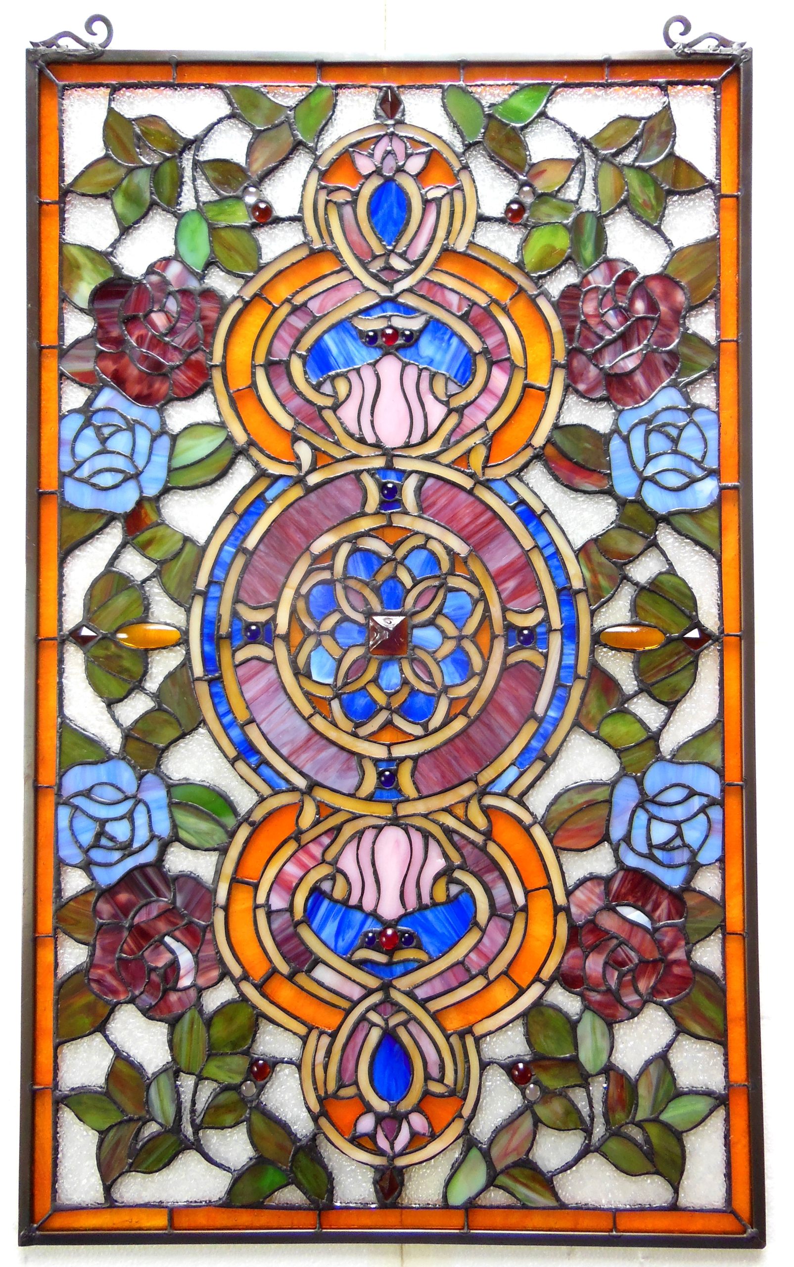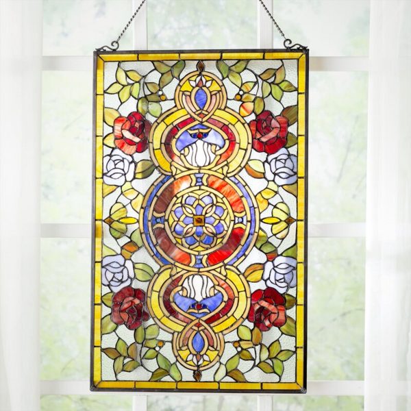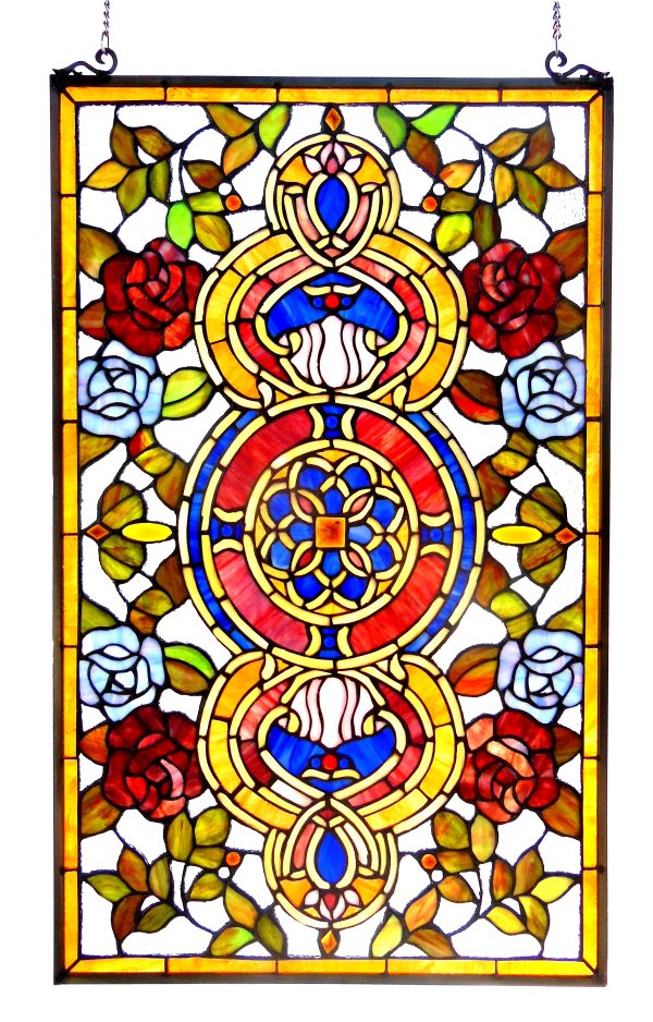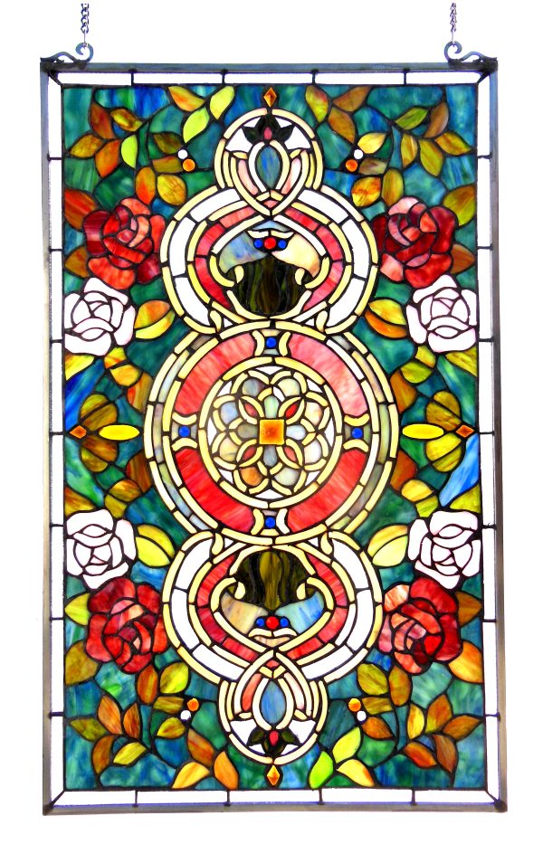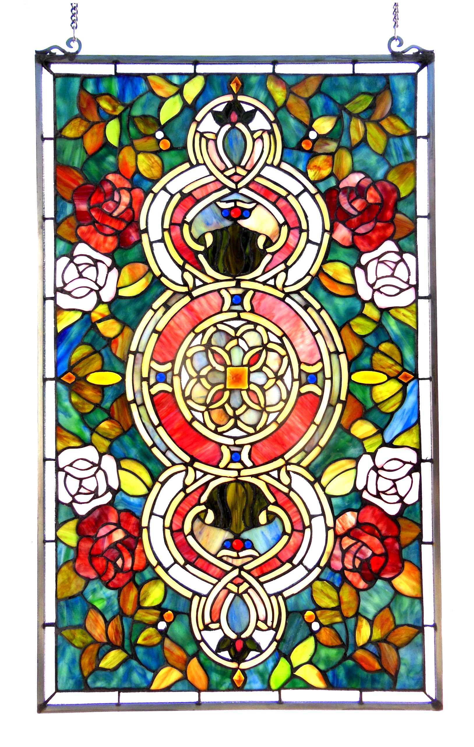 CHLOE Lighting “EUREKA SONARA” Tiffany-glass Victorian Window Panel 20×32