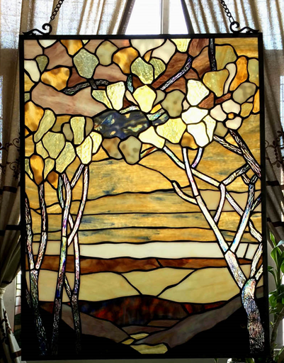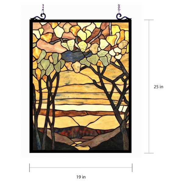 CHLOE Lighting AUTUMN VALLEY Tiffany-Style Floral Stained Glass Window Panel 25″ Height