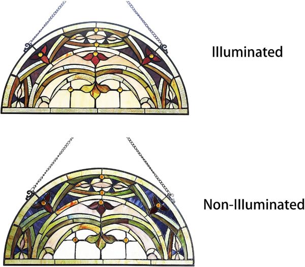 CHLOE Lighting MARION Tiffany-Style Victorian Stained-Glass Window Panel 12.5″ Height