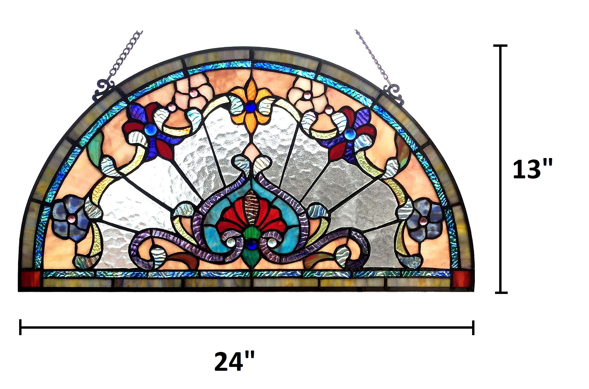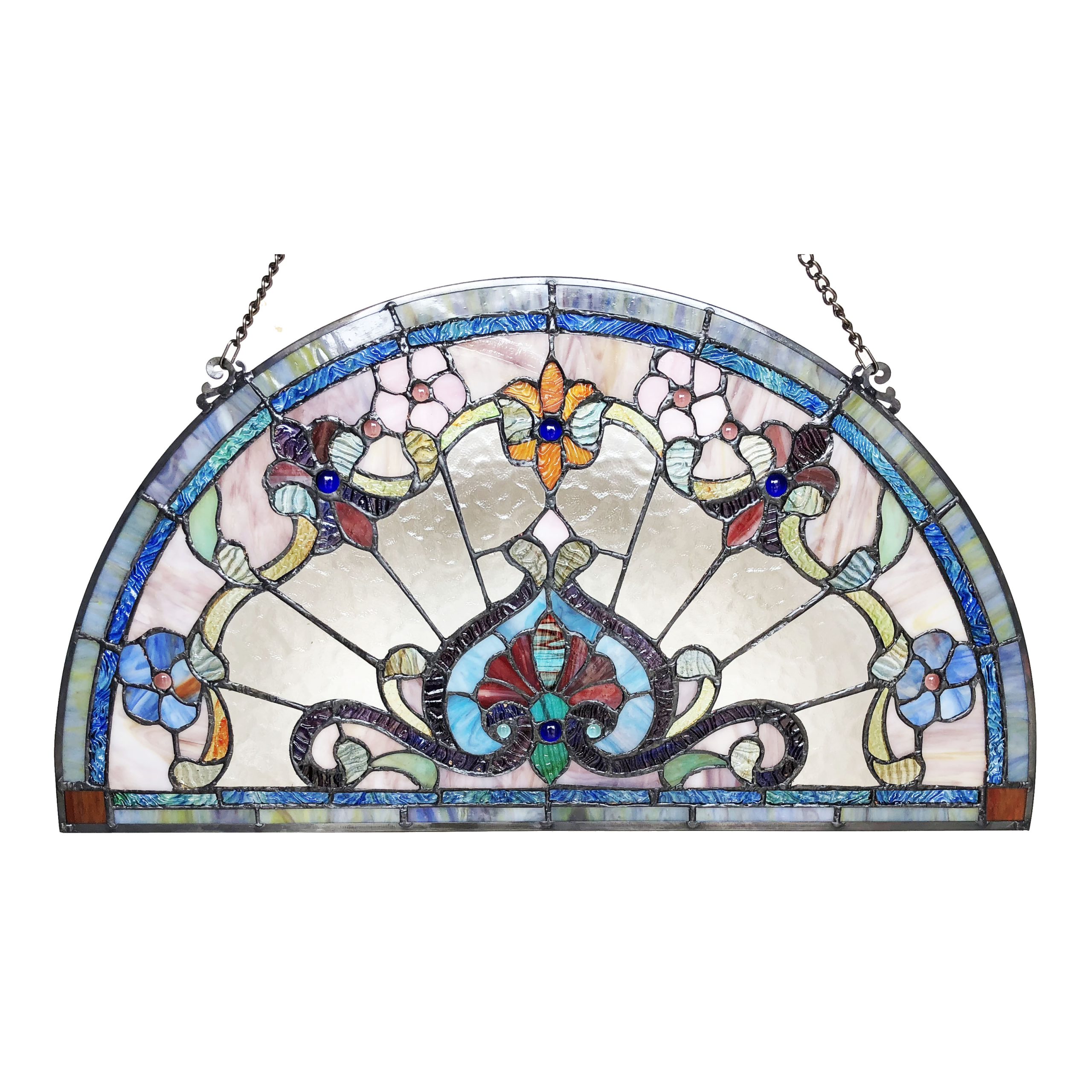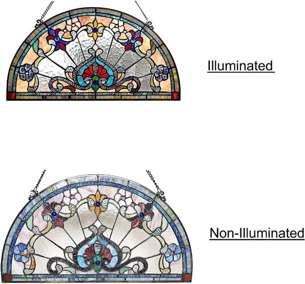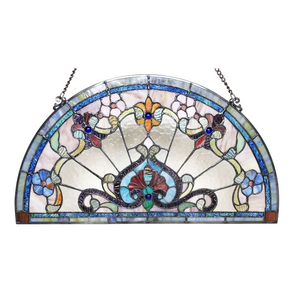 CHLOE Lighting EMERSYN Victorian Tiffany-glass Window Panel 24″ Wide