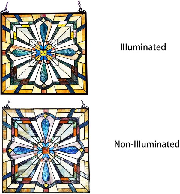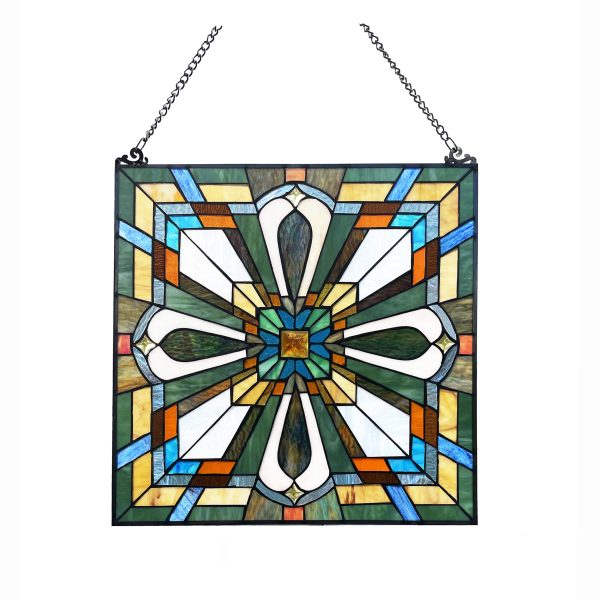 CHLOE Lighting ARCHIE Tiffany-Style Mission Stained Glass Window Panel 20″ Height