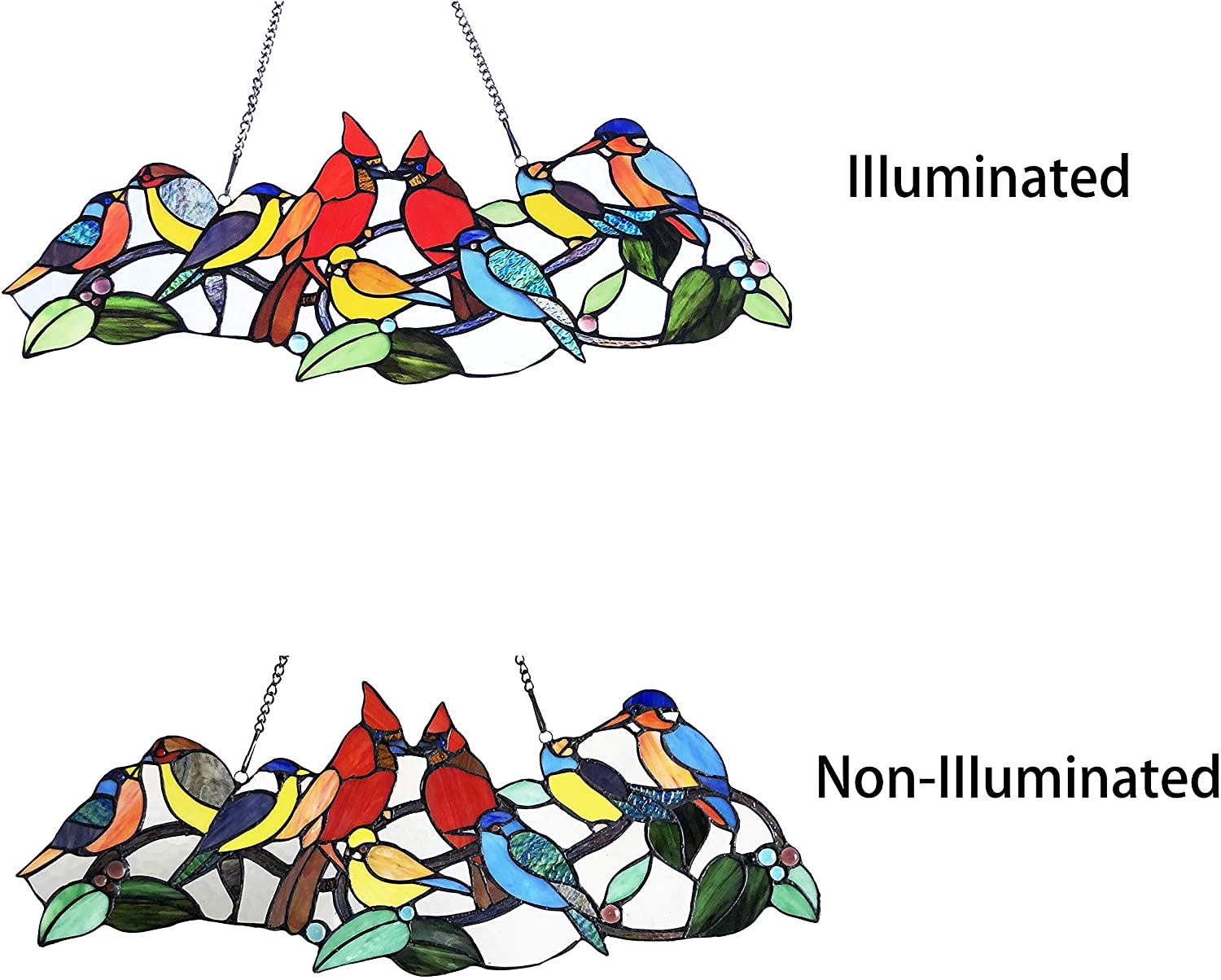 CHLOE Lighting RUBINA Tiffany-Style Animal Stained Glass Window Panel 10″ Height