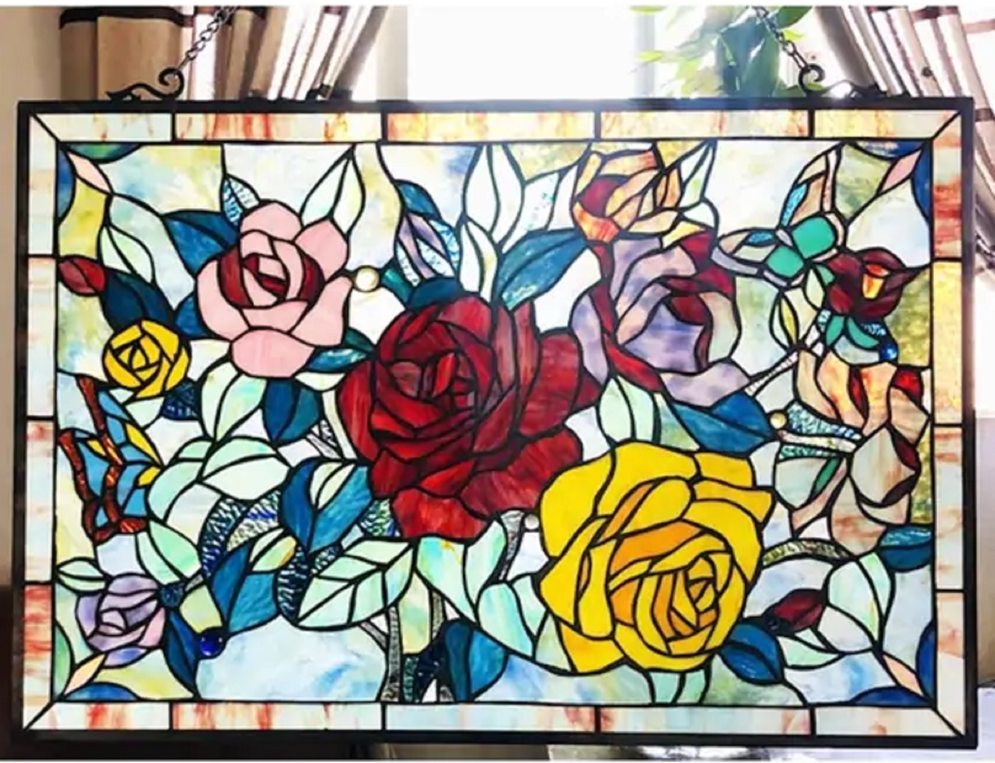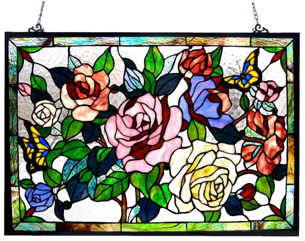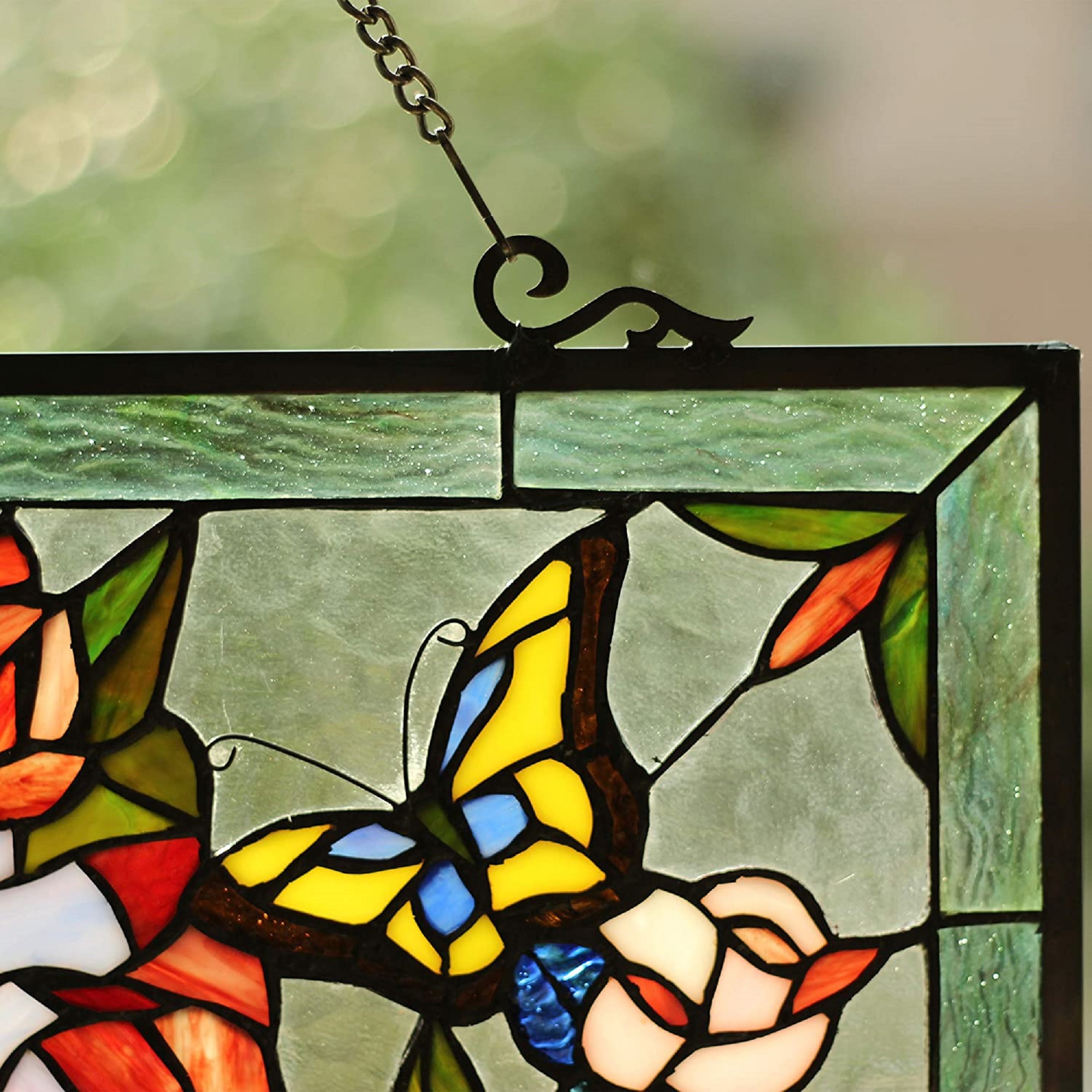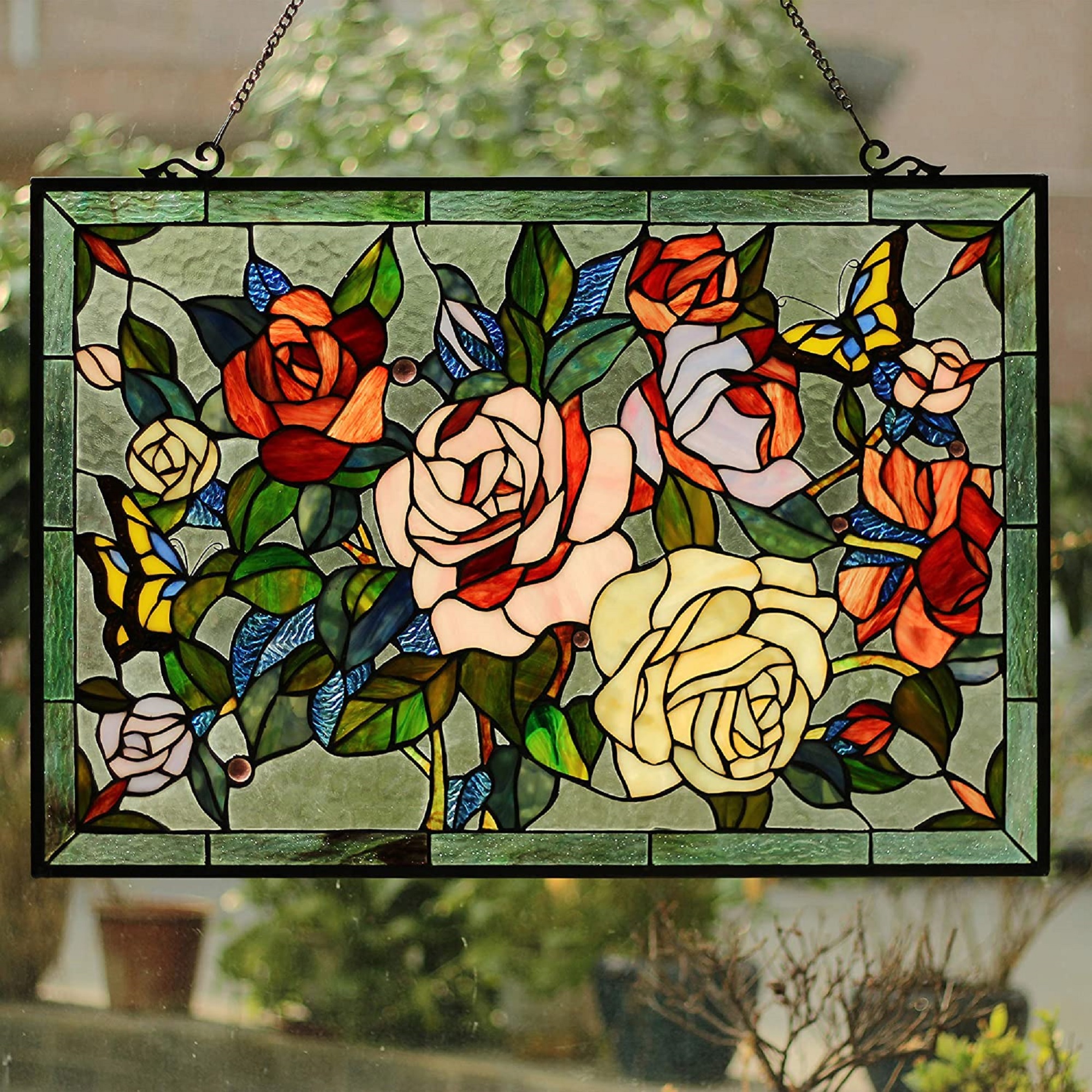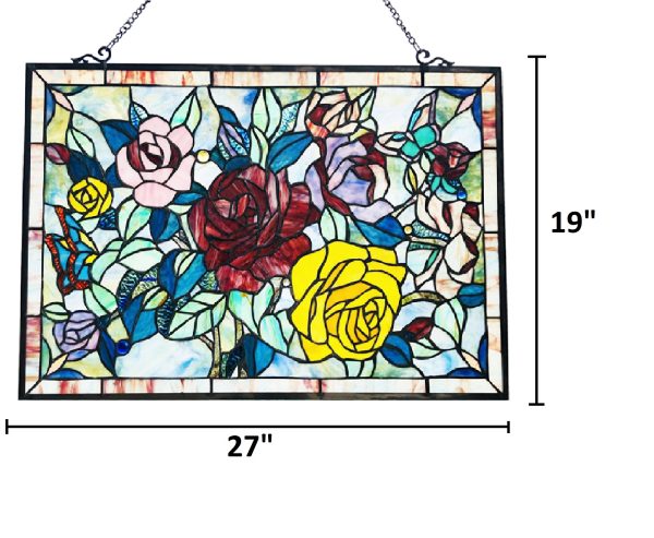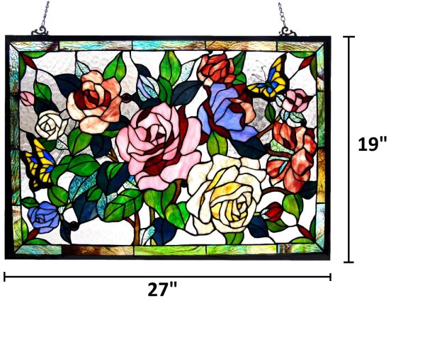 CHLOE Lighting SUNSPRITE Tiffany-Style Floal Stained Glass Window Panel 27″ Width