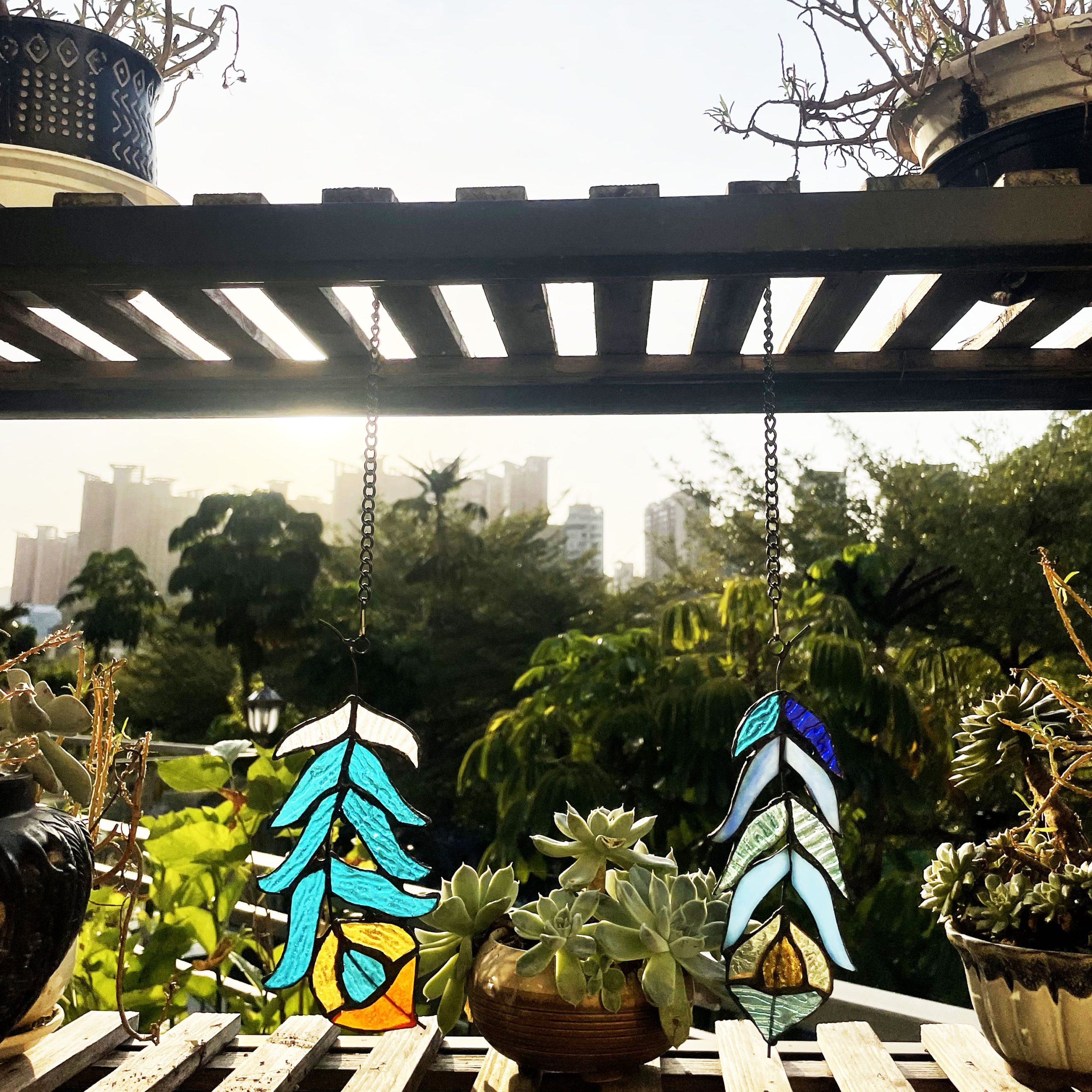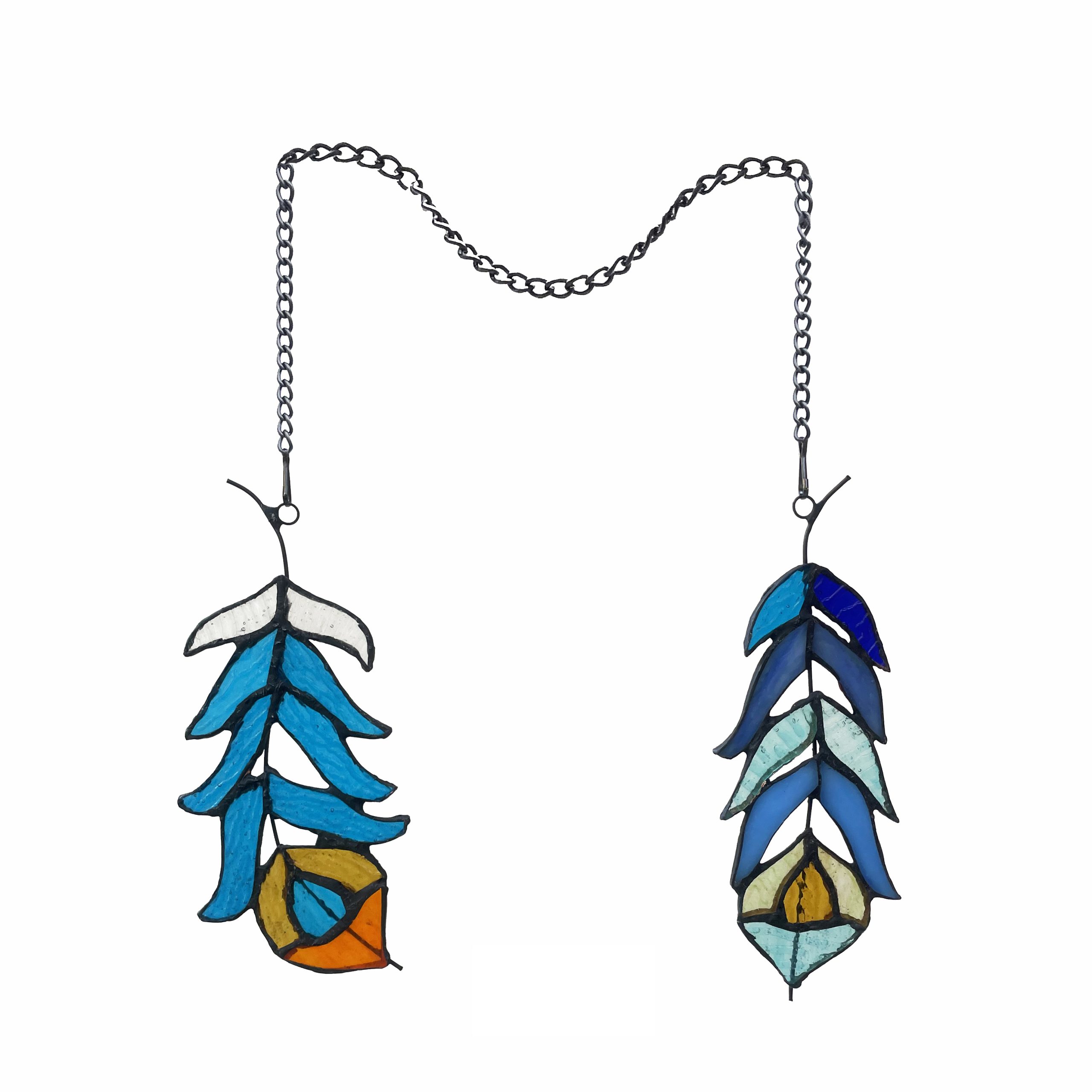 CHLOE Lighting FEATHER Tiffany-Style Stained Glass Window Panels 7″ Tall