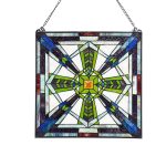 CHLOE Lighting AYLMER Mission-Style Black Finish Stained Glass Window Panel 18″ Tall