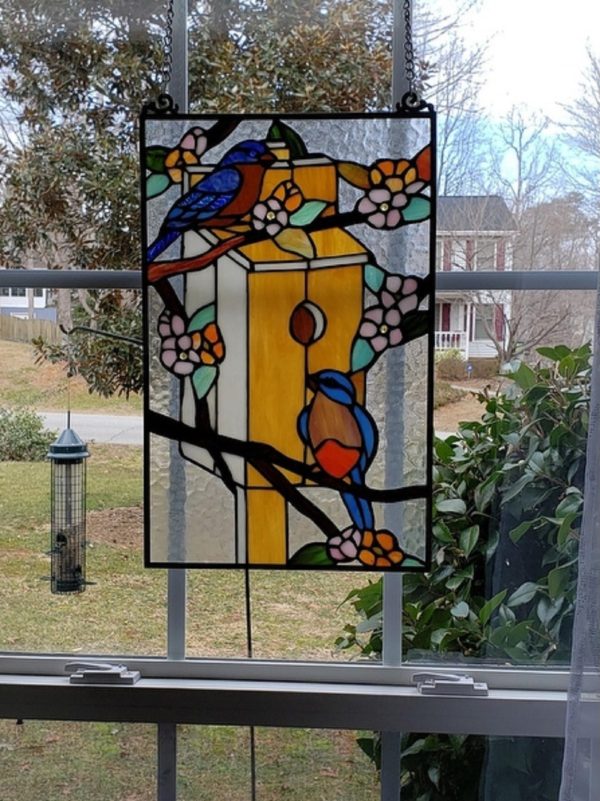 CHLOE Lighting “HOME” Tiffany-glass Window Panel 19″