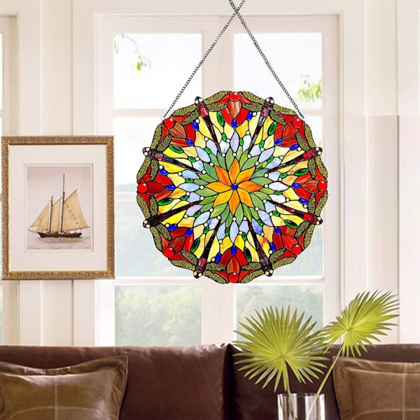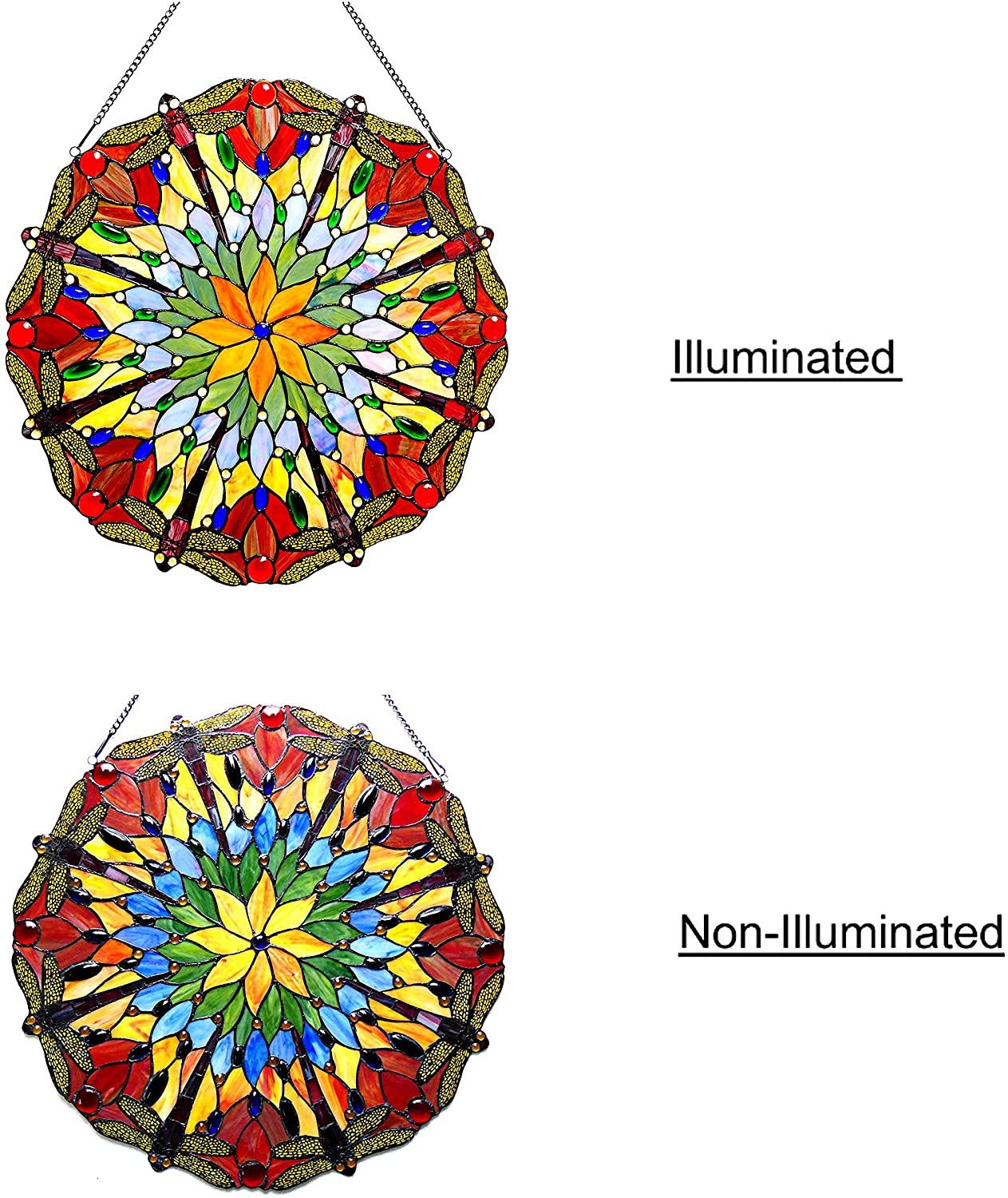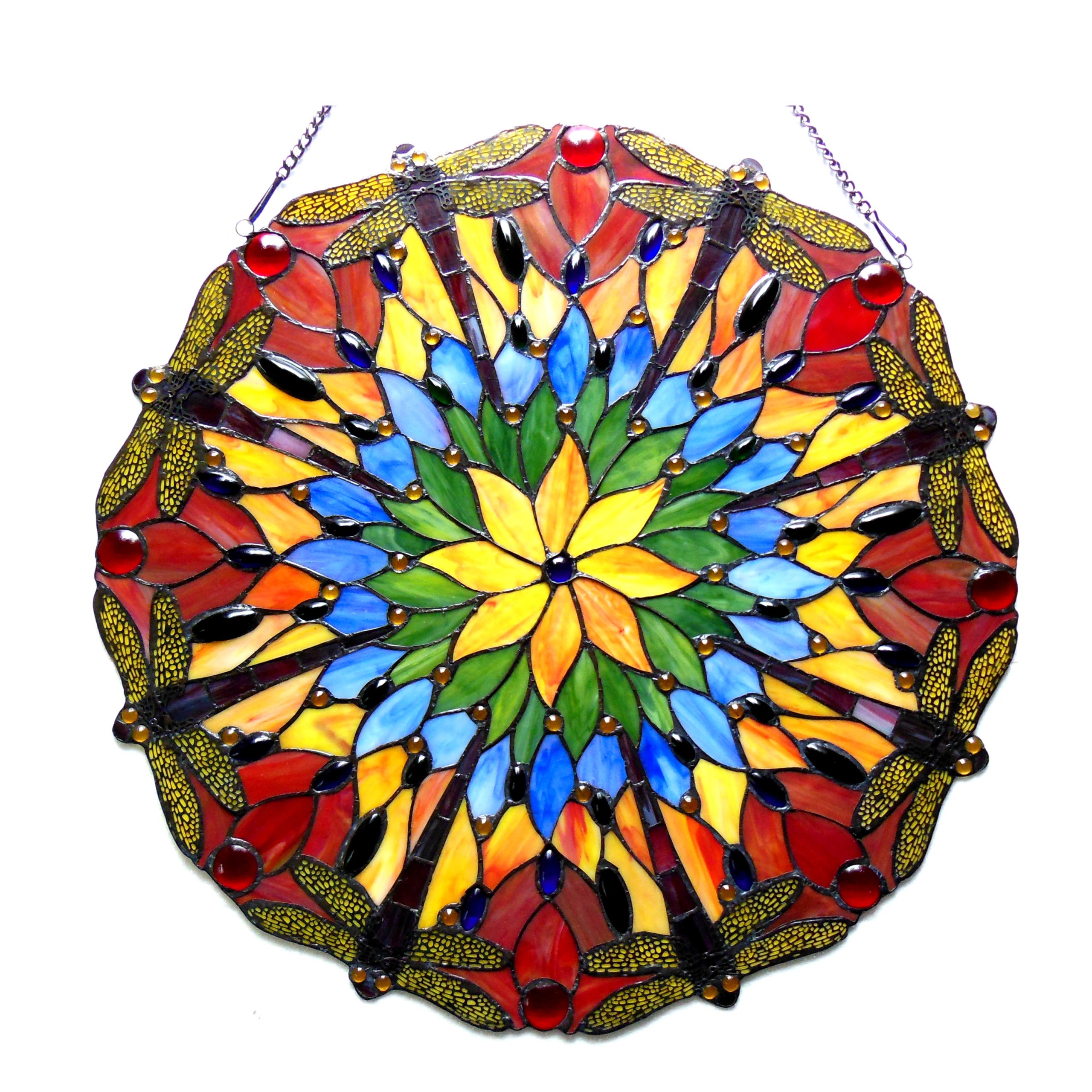 CHLOE Lighting “HAWKERS” Tiffany-glass Dragonfly Window Panel 24″