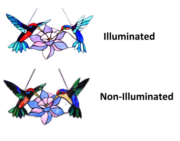 CHLOE Lighting “NECTAR” Tiffany-style Hummingbirds Glass Window Panel 18″ Wide