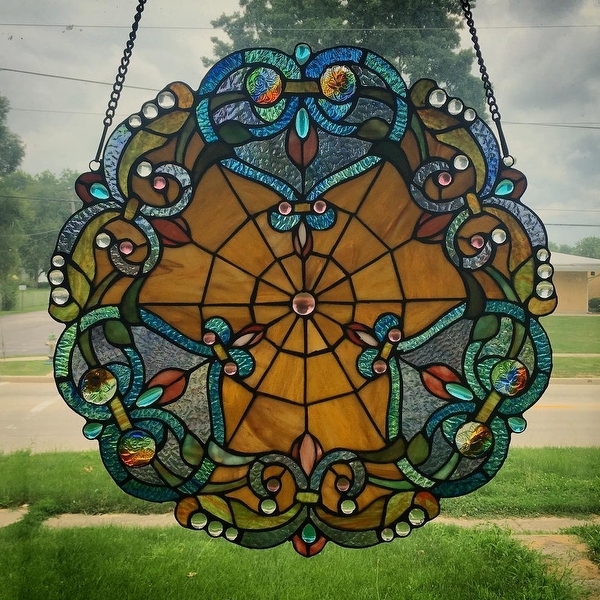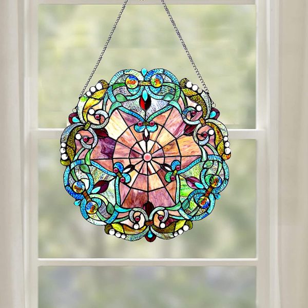 CHLOE Lighting “EMILIA” Tiffany-glass Victorian Window Panel 20″