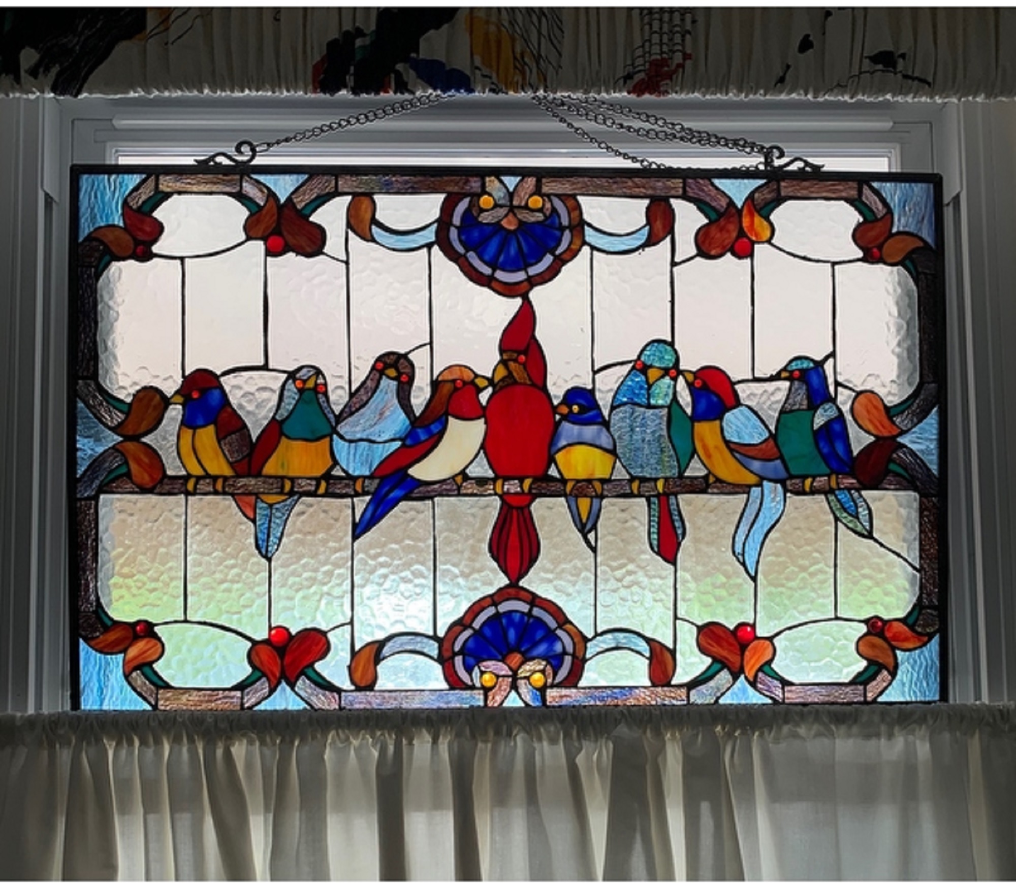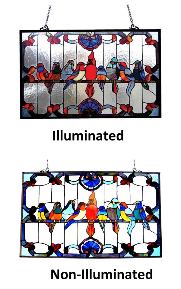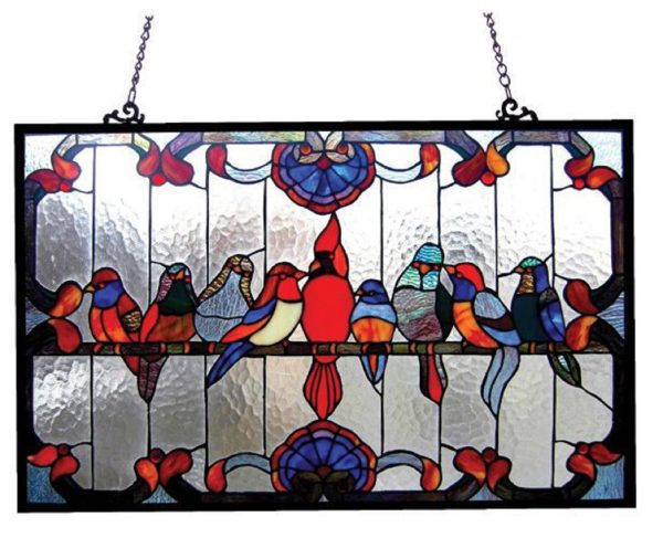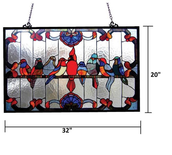 CHLOE Lighting Tiffany-glass Birds Window Panel 32×20