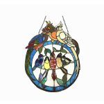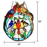 CHLOE Lighting “SONGBIRD” Tiffany-glass featuring Birds Resting on Wire Window Panel 19×25