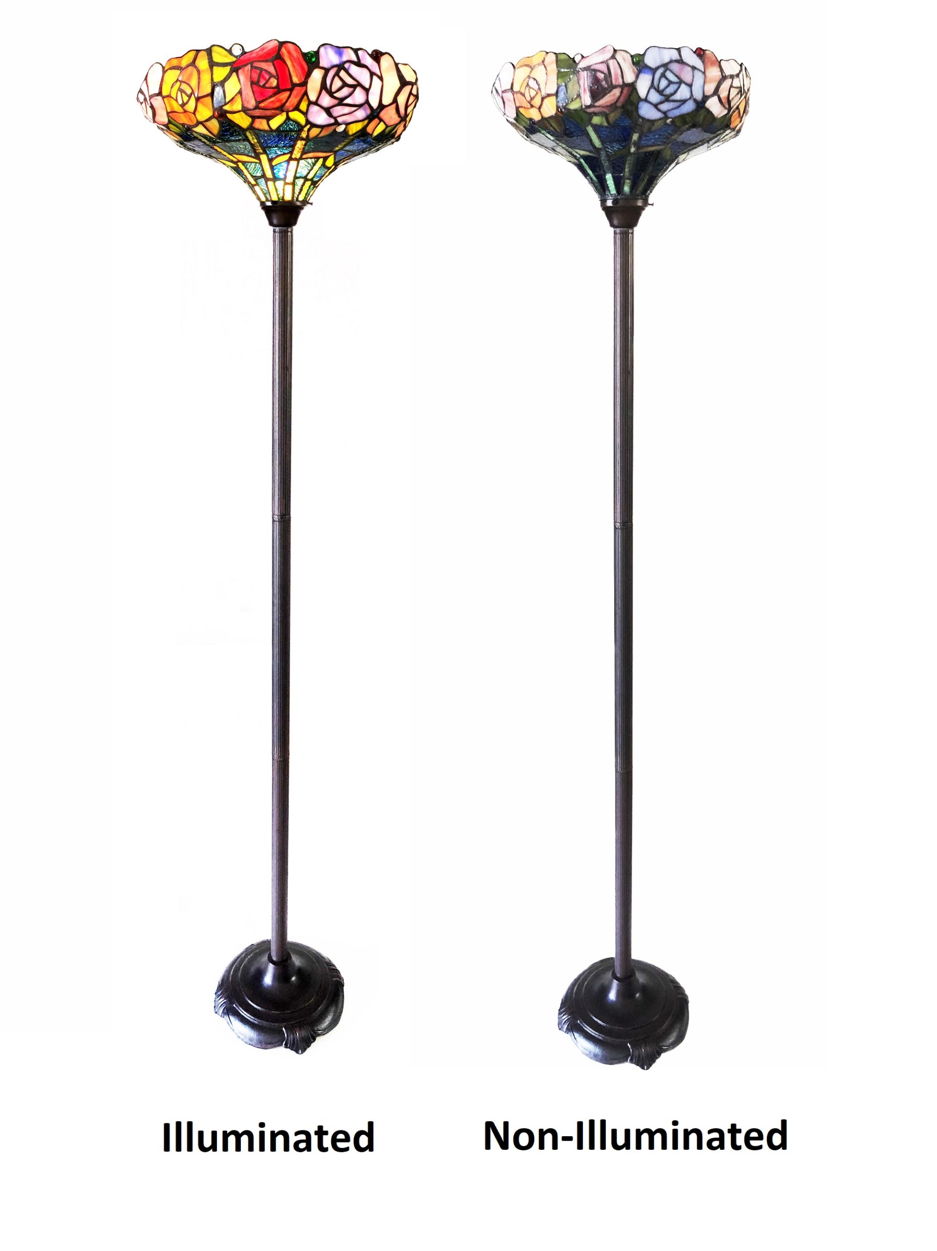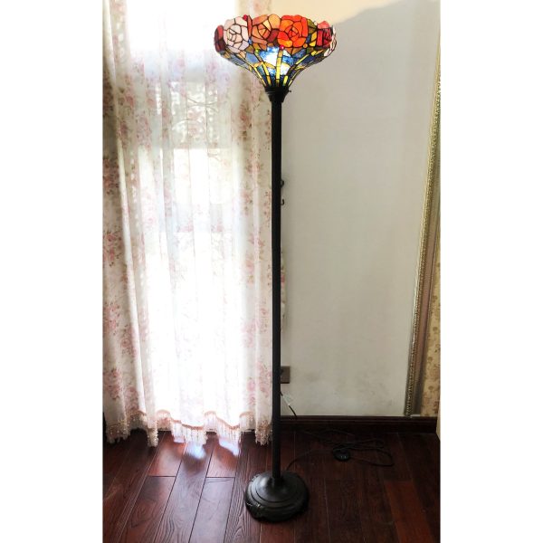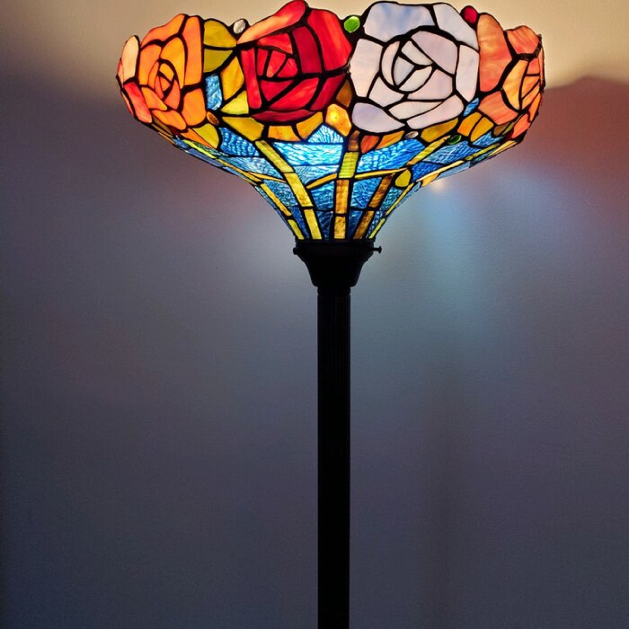 CHLOE Lighting AZALEA Tiffany-Style Floral Stained Glass Torchiere Floor Lamp 67″ Height