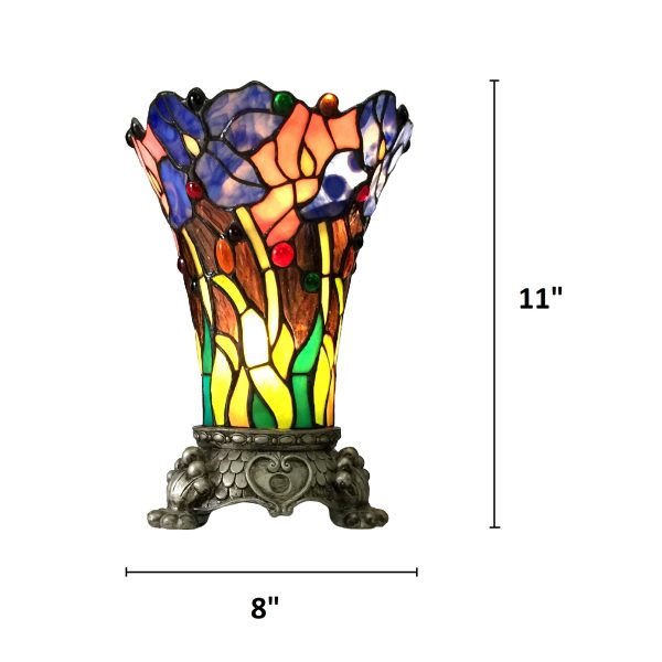 CHLOE Lighting BROOK Floral 1 Light Antique Brass Table Lamp 11″ Tall Shade