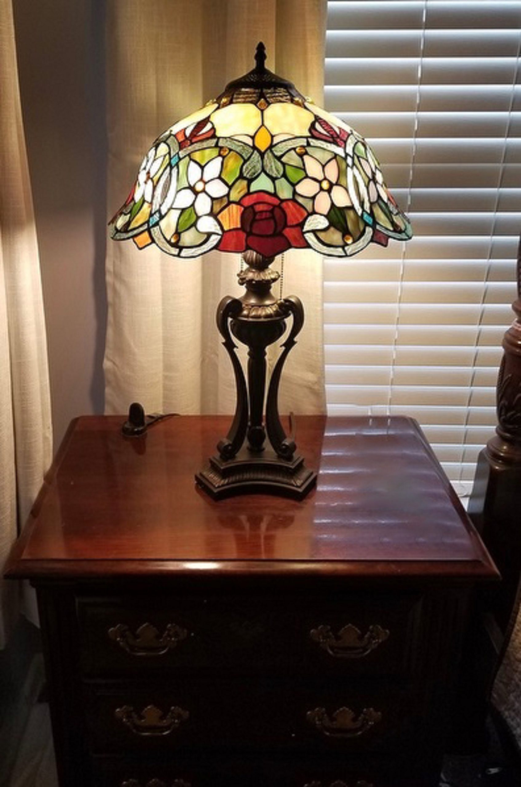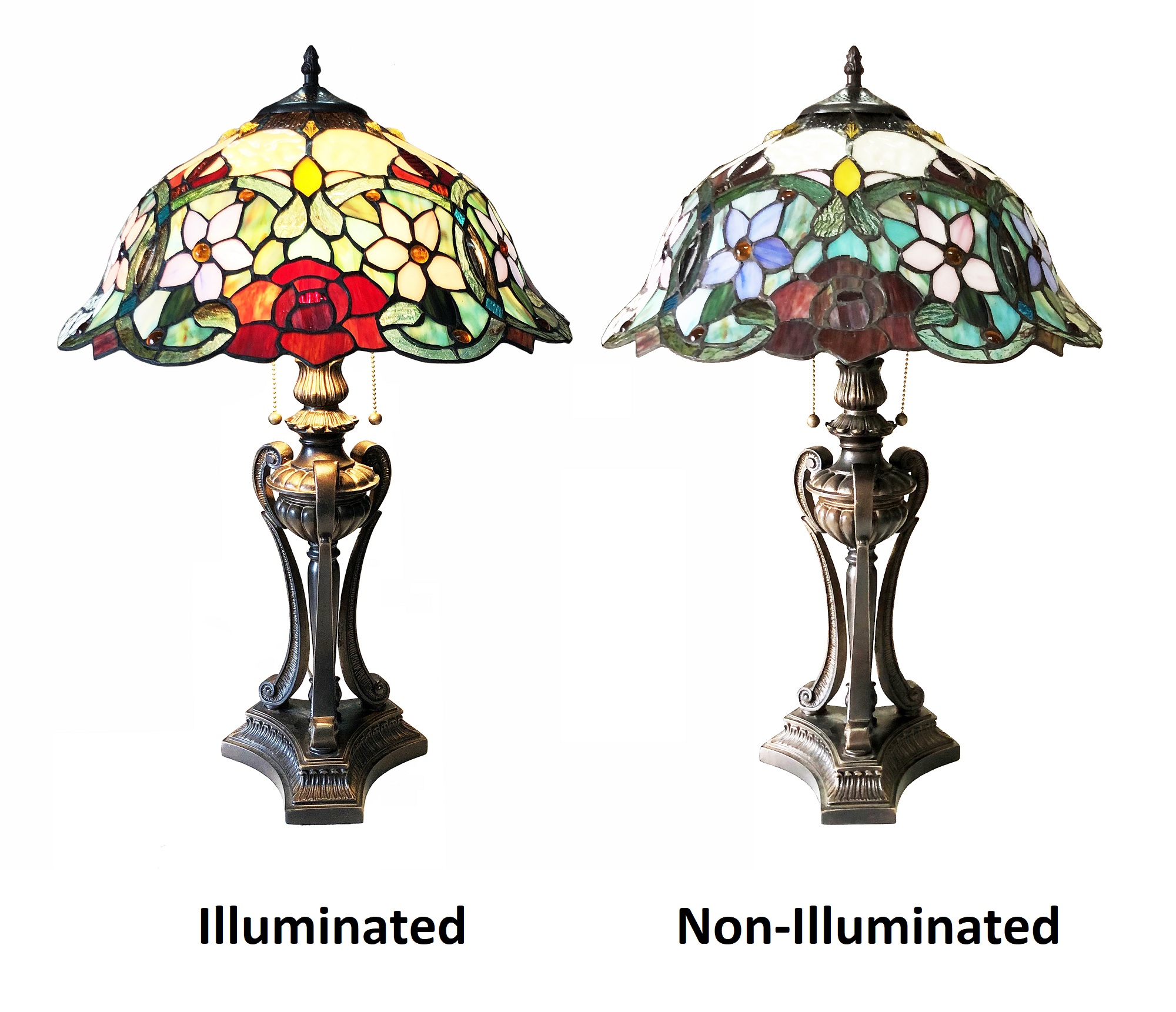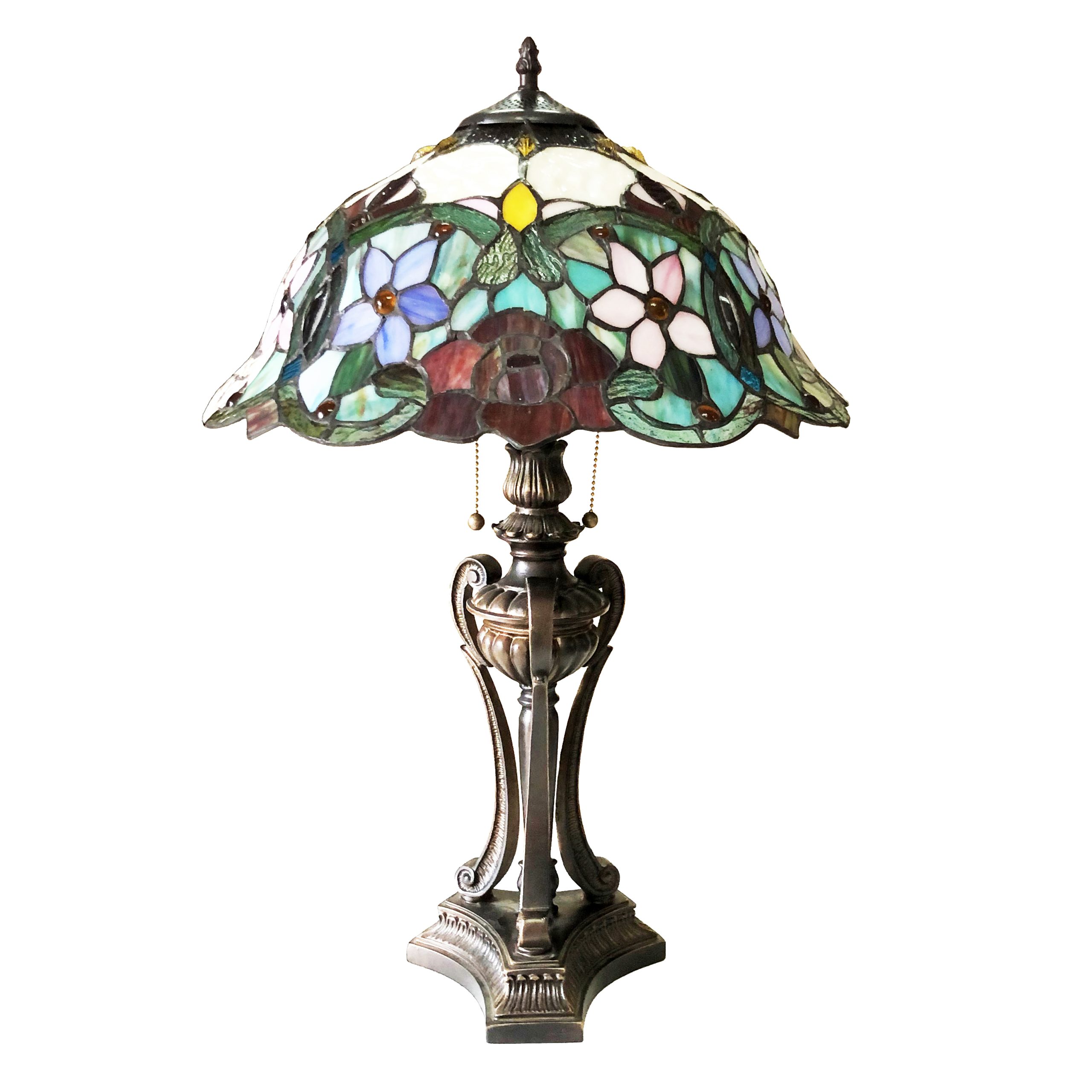 CHLOE Lighting PIPER Tiffany-Style Floral Stained Glass Table Lamp 26″ Height