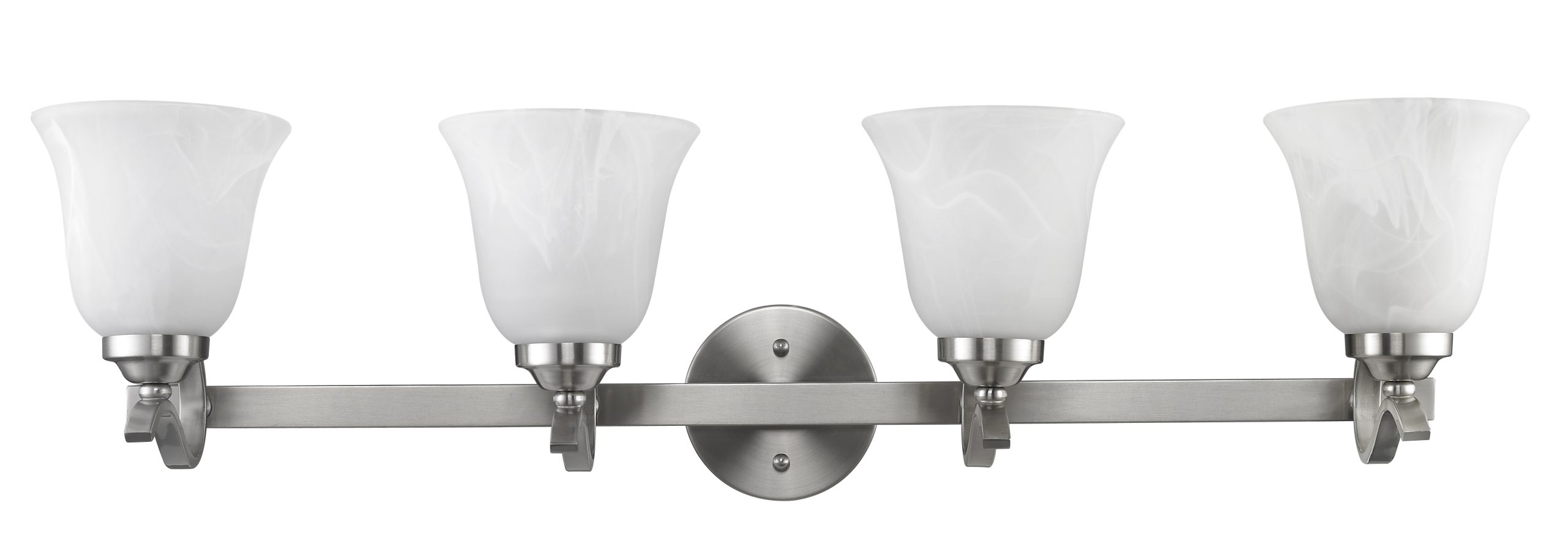 CHLOE Lighting “AVALINE” Transitional 4 Light Brushed Nickel Bath Vanity Wall Fixture White Alabaster Glass 34.5″ Wide