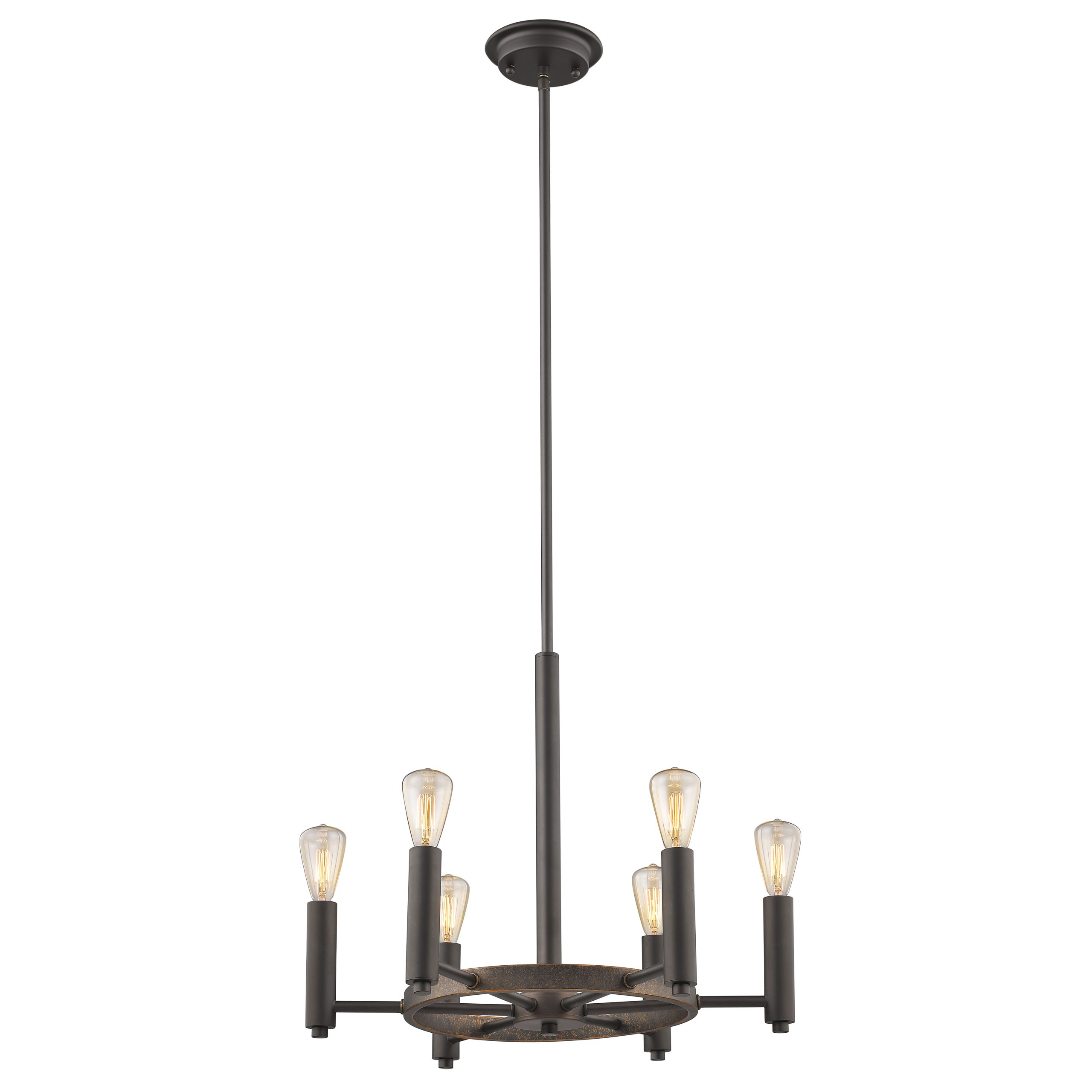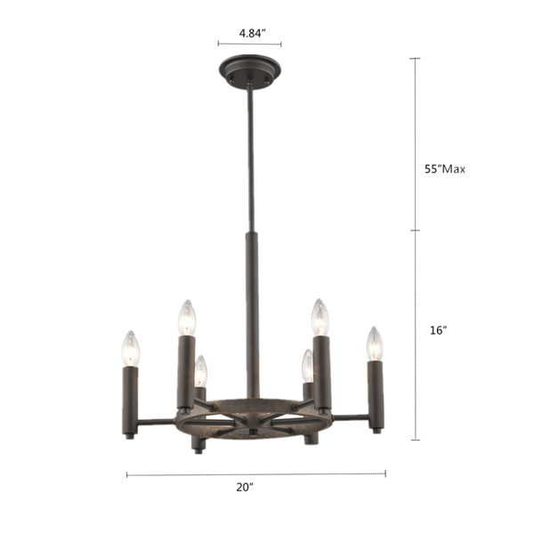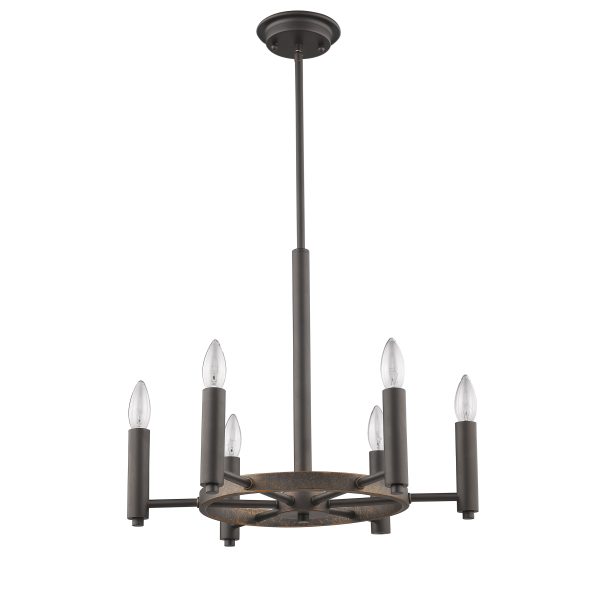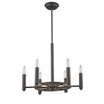 CHLOE Lighting “IRONCLAD” Industrial-style 6 Light Rubbed Bronze Ceiling Pendant 20″ Wide