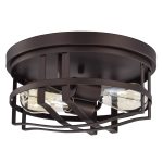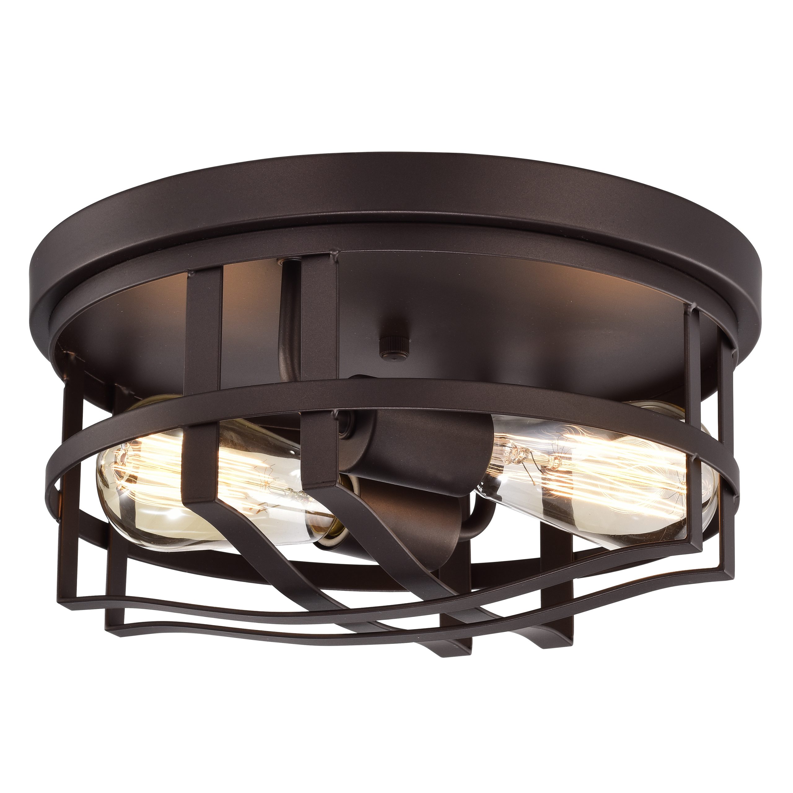 CHLOE Lighting IRONCLAD Industrial 2 Light Oil Rubbed Bronze Ceiling Flush Fixture 12″ Wide