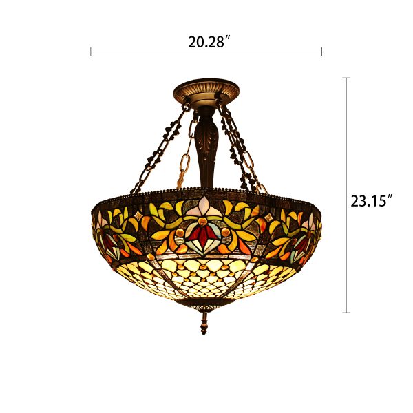 CHLOE Lighting “FALLON” Tiffany-style 3 Light Inverted Ceiling Pendant 20″ Shade