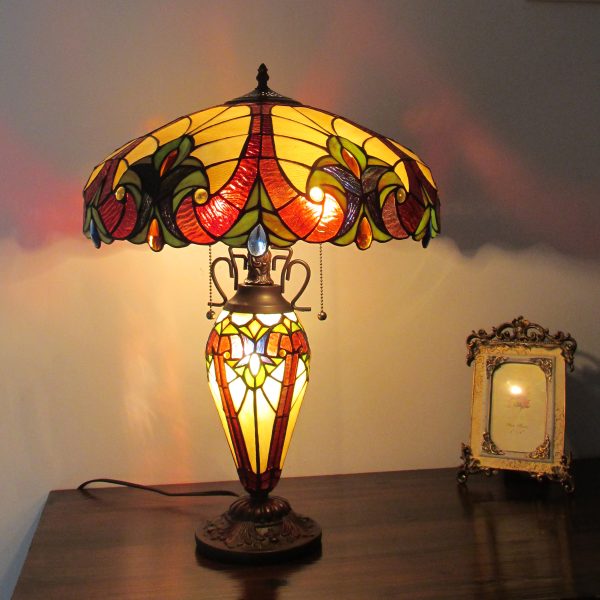 CHLOE Lighting “ADIA” Tiffany-style Victorian 3 Light Double Lit Table Lamp 18″ Shade