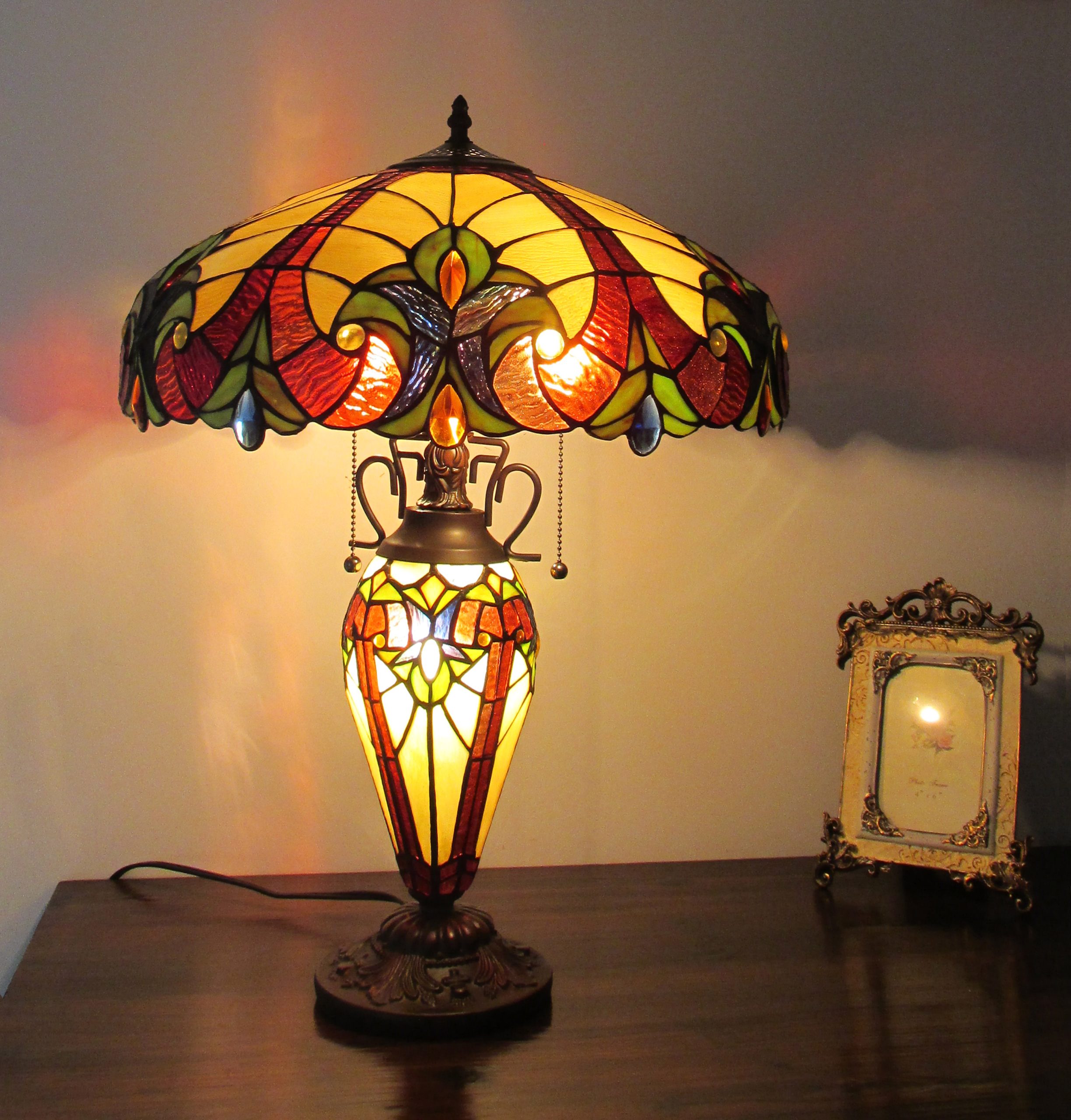 CHLOE Lighting “ADIA” Tiffany-style Victorian 3 Light Double Lit Table Lamp 18″ Shade