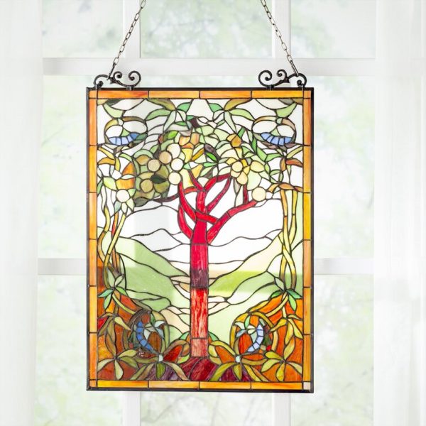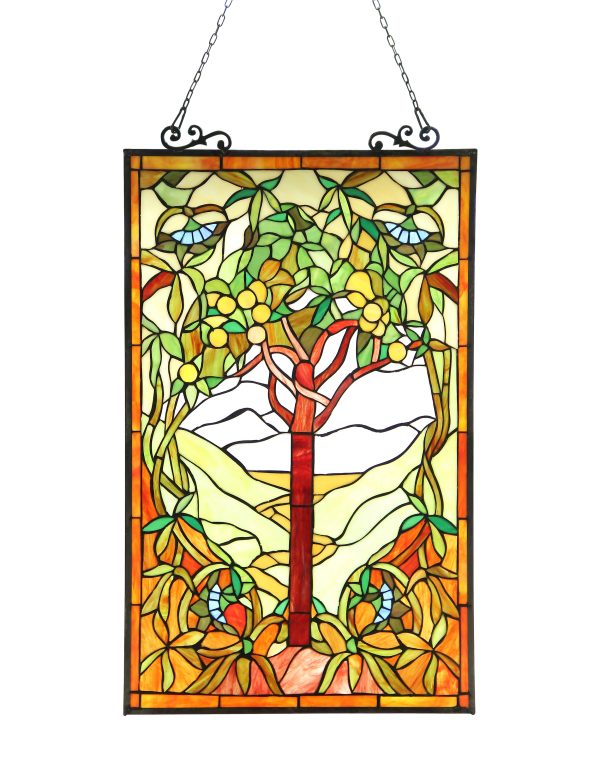 CHLOE Lighting “OLEA” Fruits of Life Tiffany-style Glass Window Panel 20×32
