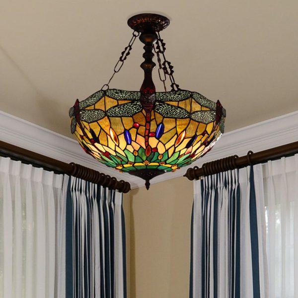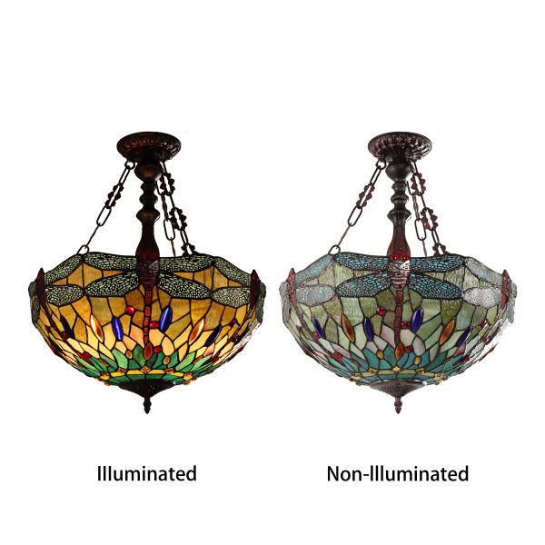 CHLOE Lighting EMPRESS Tiffany-style Blackish Bronze 3 Light Hanging Pendant 18″ Wide