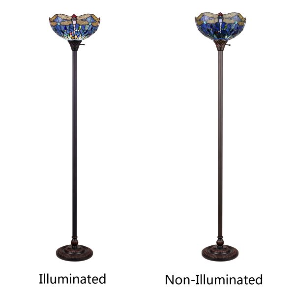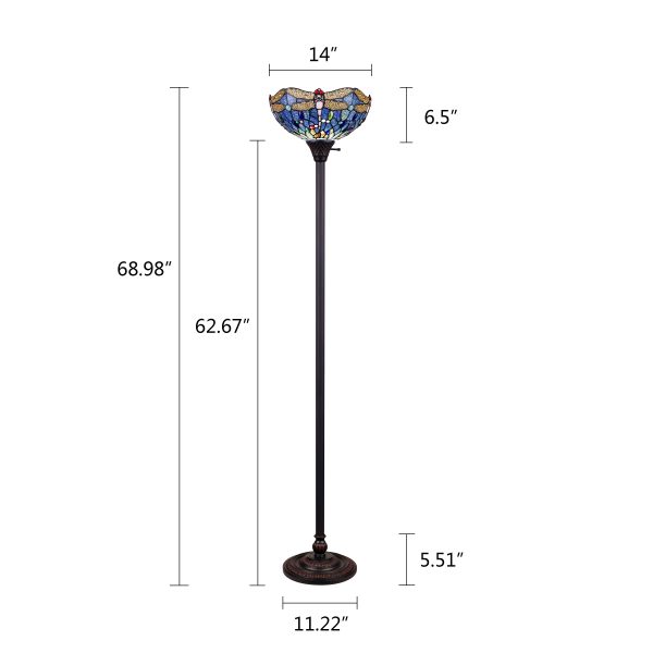 CHLOE Lighting SUNNIVA Dragonfly-Style Dark Bronze 1 Light Torchiere Floor Lamp 14″ Wide