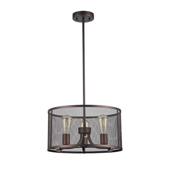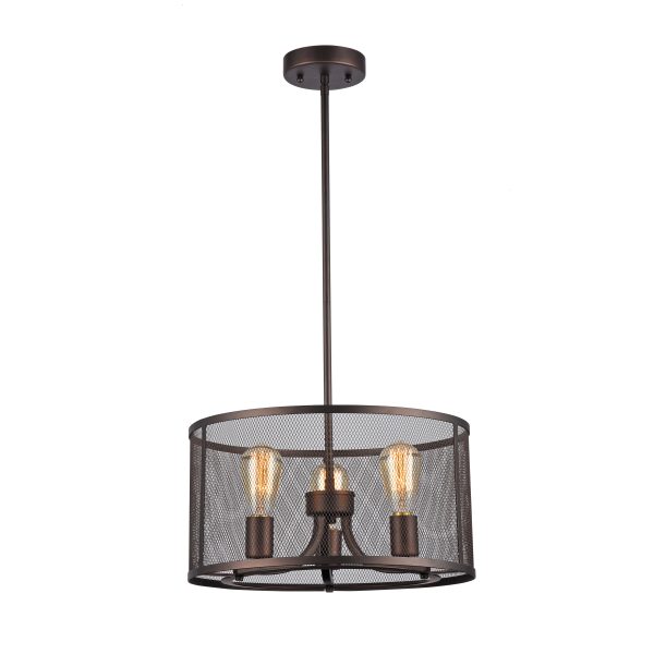 CHLOE Lighting “LORRY” Industrial-style 3 Light Rubbed Bronze Ceiling Pendant 16″ Shade