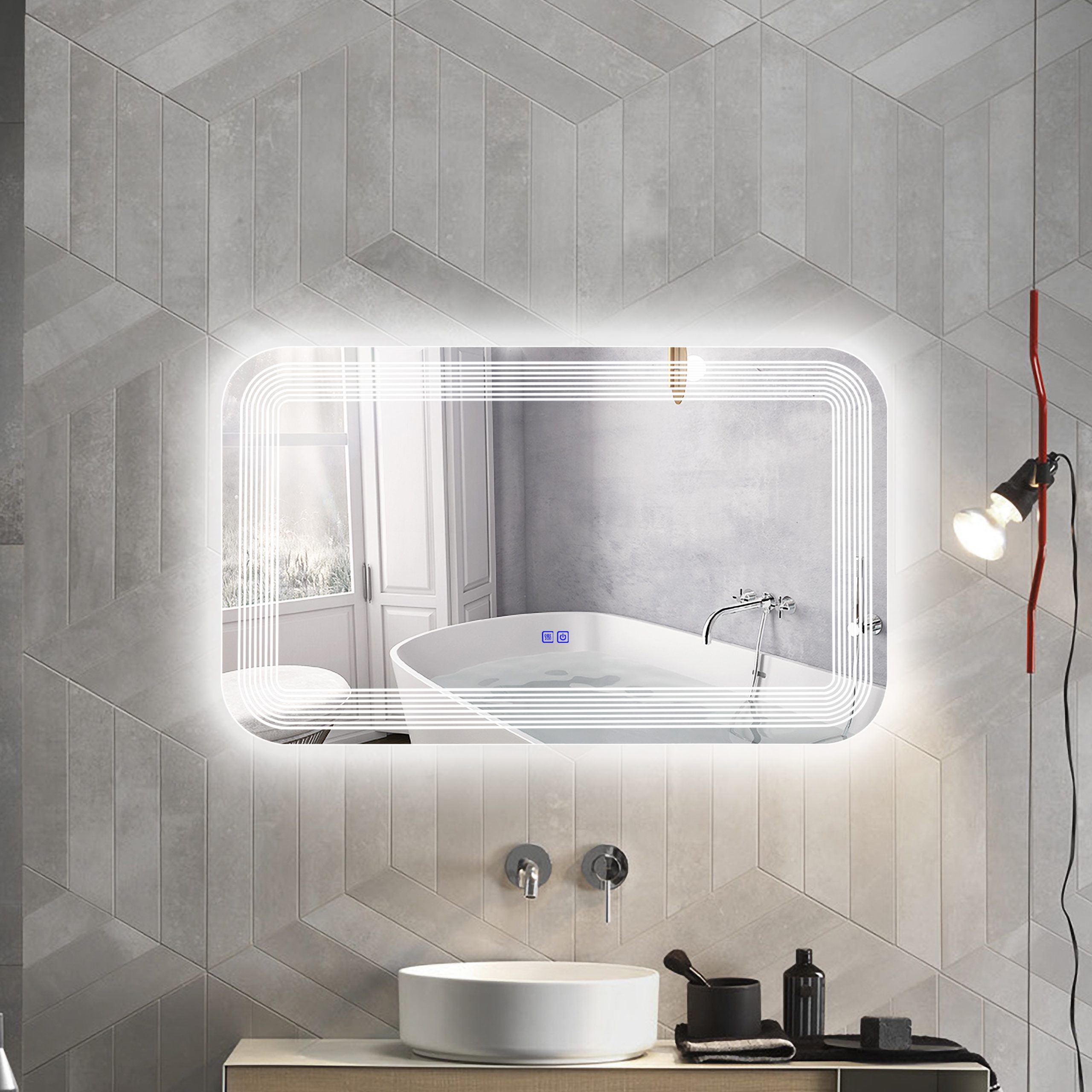 CHLOE Lighting LUMINOSITY Back Lit Rectangular TouchScreen LED Mirror 3 Color Temperatures 3000K-6000K 39″ Wide